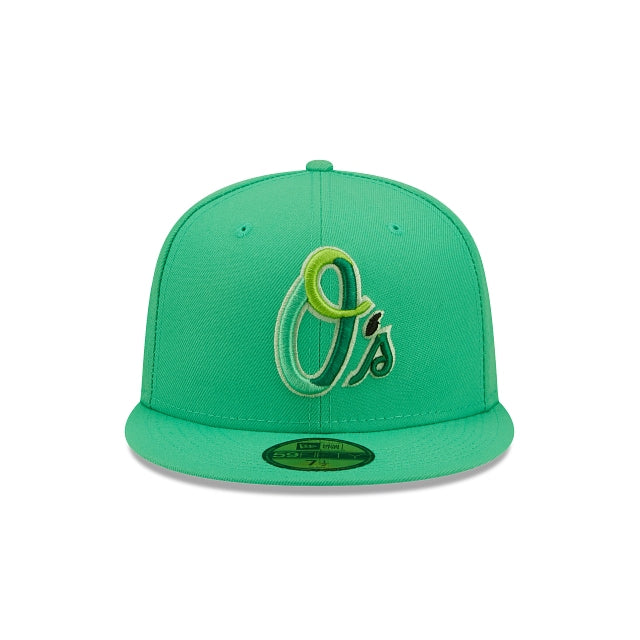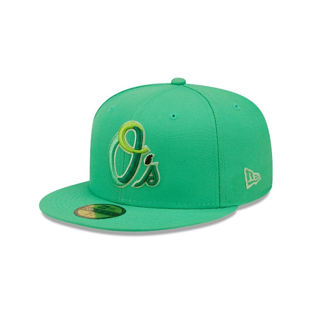 The Baltimore Orioles Snakeskin 59FIFTY Fitted Cap features an embroidered Orioles multi-colored logo at the front panels, a 1983 World Series patch at the right-wear side, and a matching MLB Batterman logo at the rear. Additional details include a snakeskin inspired inner sweatband and green undervisor.