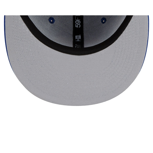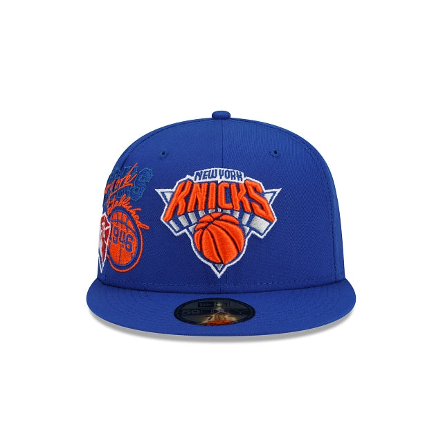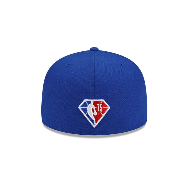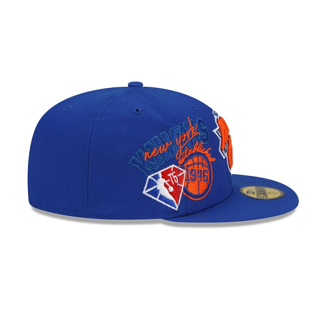 The push for the playoffs starts with this year's NBA Back Half Collection. The New York Knicks Back Half 59FIFTY Fitted Cap features an embroidered Knicks logo at the front panels with team and league specific embroidered artwork at the right-wear side extending to the front panels, and the NBA 75th anniversary logo embroidered at the rear.