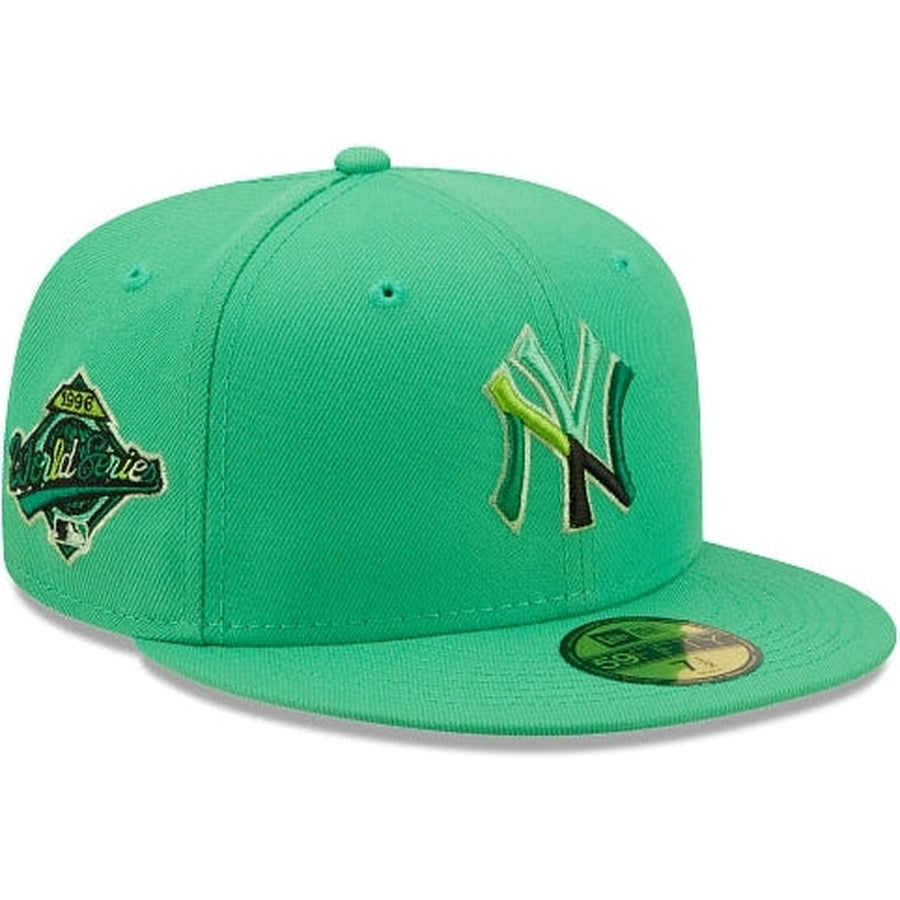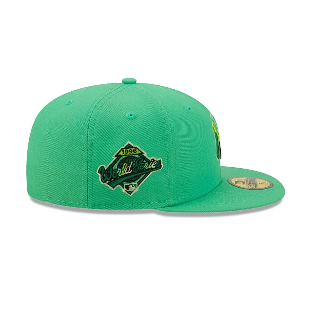 The New York Yankees Snakeskin 59FIFTY Fitted Cap features an embroidered Yankees multi-colored logo at the front panels, a 1996 World Series patch at the right-wear side, and a matching MLB Batterman logo at the rear. Additional details include a snakeskin inspired inner sweatband and green undervisor.