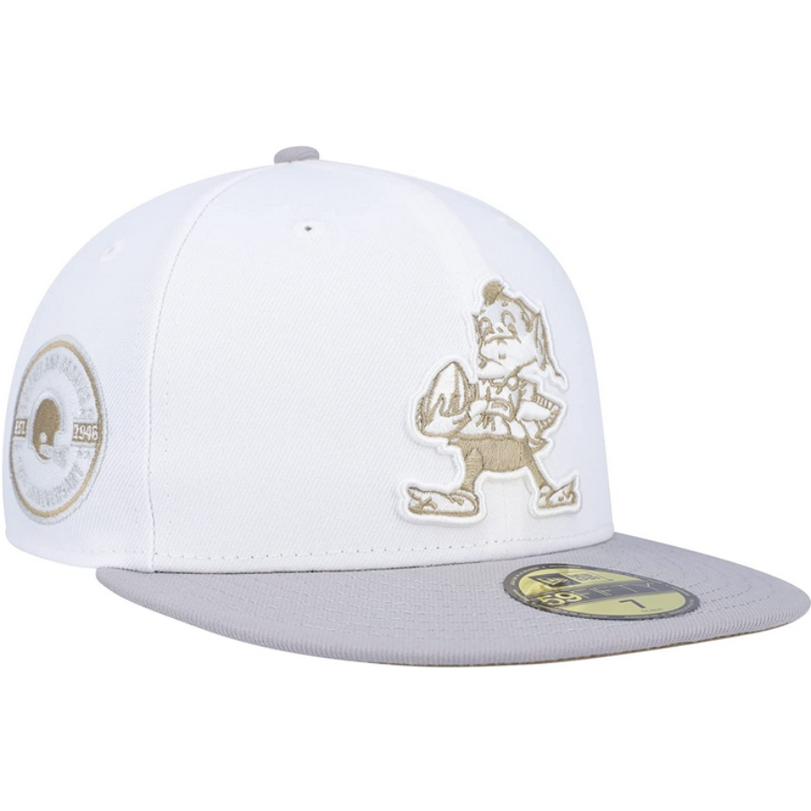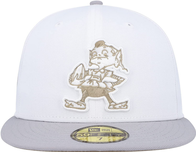 Add a stylish finishing touch to any fan getup with this Cleveland Browns Gold Undervisor 59FIFTY hat by New Era. It features a fitted construction and trendy high crown for a classic game day look. The bold Cleveland Browns embroidery on the front panels is complemented by a commemorative 75th Anniversary side patch, showing that you're more than a casual fan.