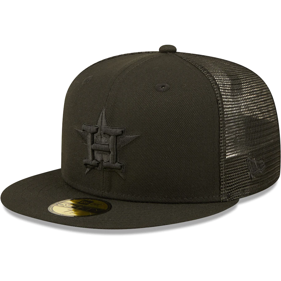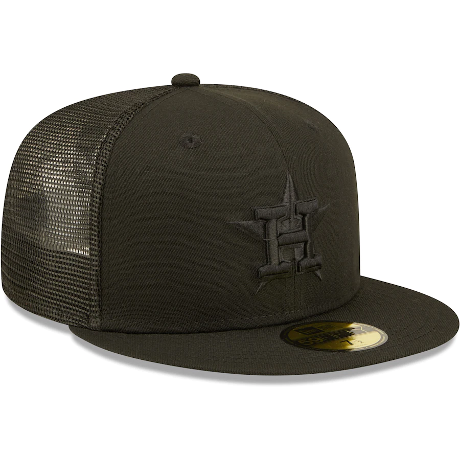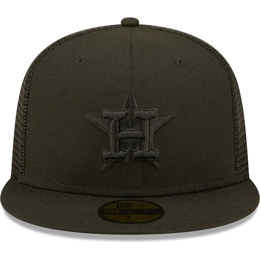 Flip the switch on your Houston Astros fandom to dark mode with this New Era Trucker 59FIFTY fitted hat. It features a monochrome blackout design with sleek Houston Astros embroidery on the front panels for a timeless look. Additionally, the mesh panels promote a breezy feel.