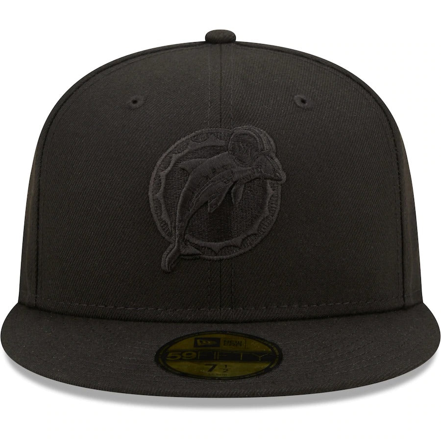 Add a sleek touch to your Miami Dolphins collection with this Black on Black Team 59FIFTY fitted hat from New Era. This structured cap features crisp Miami Dolphins graphics that go with any outfit, making this perfect for showing off your loyalty every day. Grab this timeless hat for game days through the years.