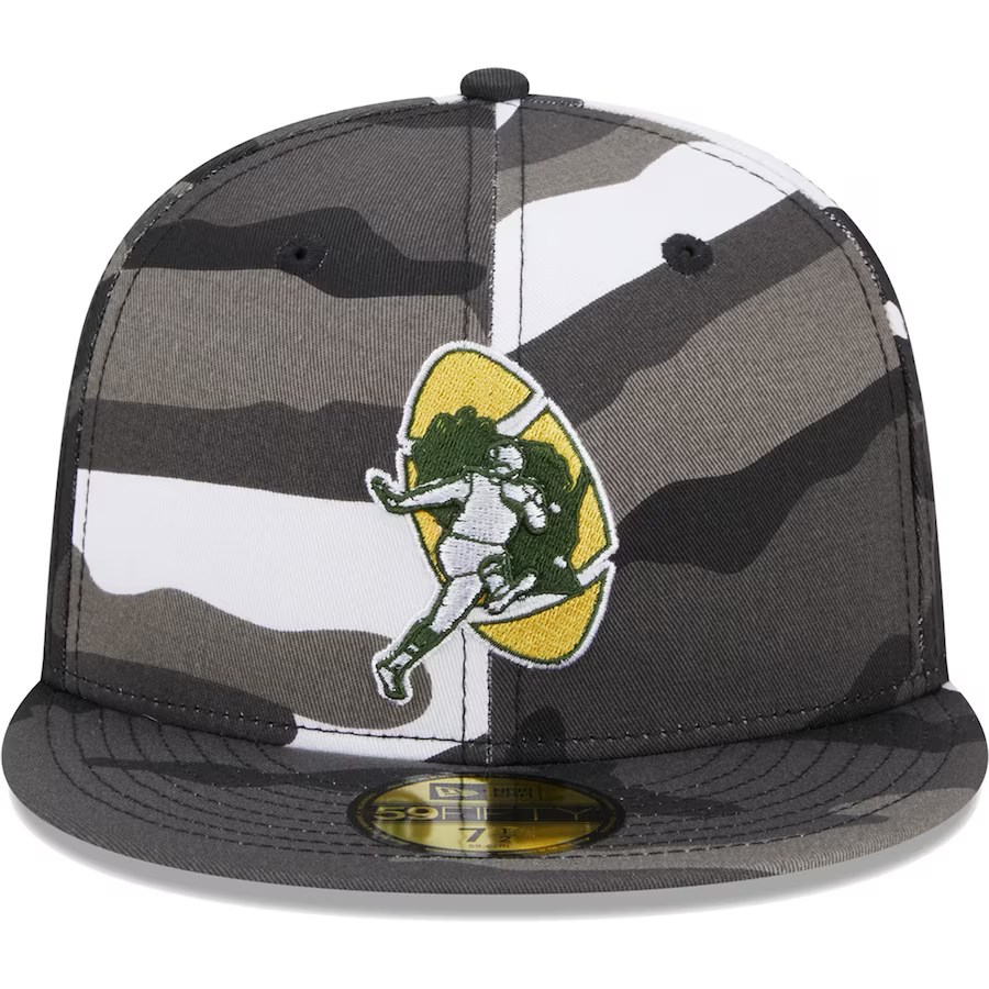 Level up your Green Bay Packers game with the edgy and stylish Urban Camo 59FIFTY hat by New Era. This hat brings a street-ready flair to your fandom, making it a must-have accessory for any die-hard fan. Constructed with a structured design, flat bill, and high crown, this hat exudes a trendy and elevated look that sets you apart from the crowd. The vibrant Green Bay Packers graphics take center stage, beautifully showcased against a cool camo background.
