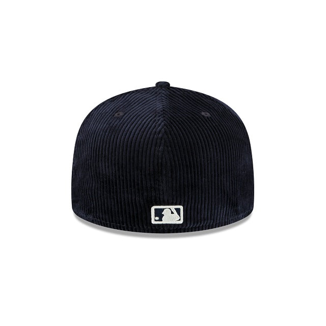 Fit for any occasion. The New York Yankees Corduroy 59FIFTY Fitted Cap features a team color corduroy fabrication with an embroidered Yankees logo at the front panels with a MLB Batterman logo at the rear and a gray undervisor.
