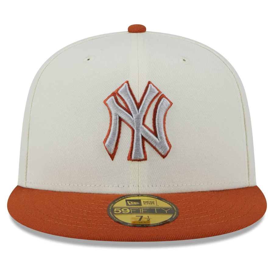Effortlessly enhance your game day outfit with the New York Yankees Cream/Orange 2023 59FIFTY cap from New Era. This cap showcases striking New York Yankees graphics in a one-of-a-kind cream & rust orange color scheme, intricately embroidered on the crown and side. It's an ideal way to showcase your unwavering support for the team. Plus, the fitted construction guarantees a comfortable fit that lasts throughout the day.