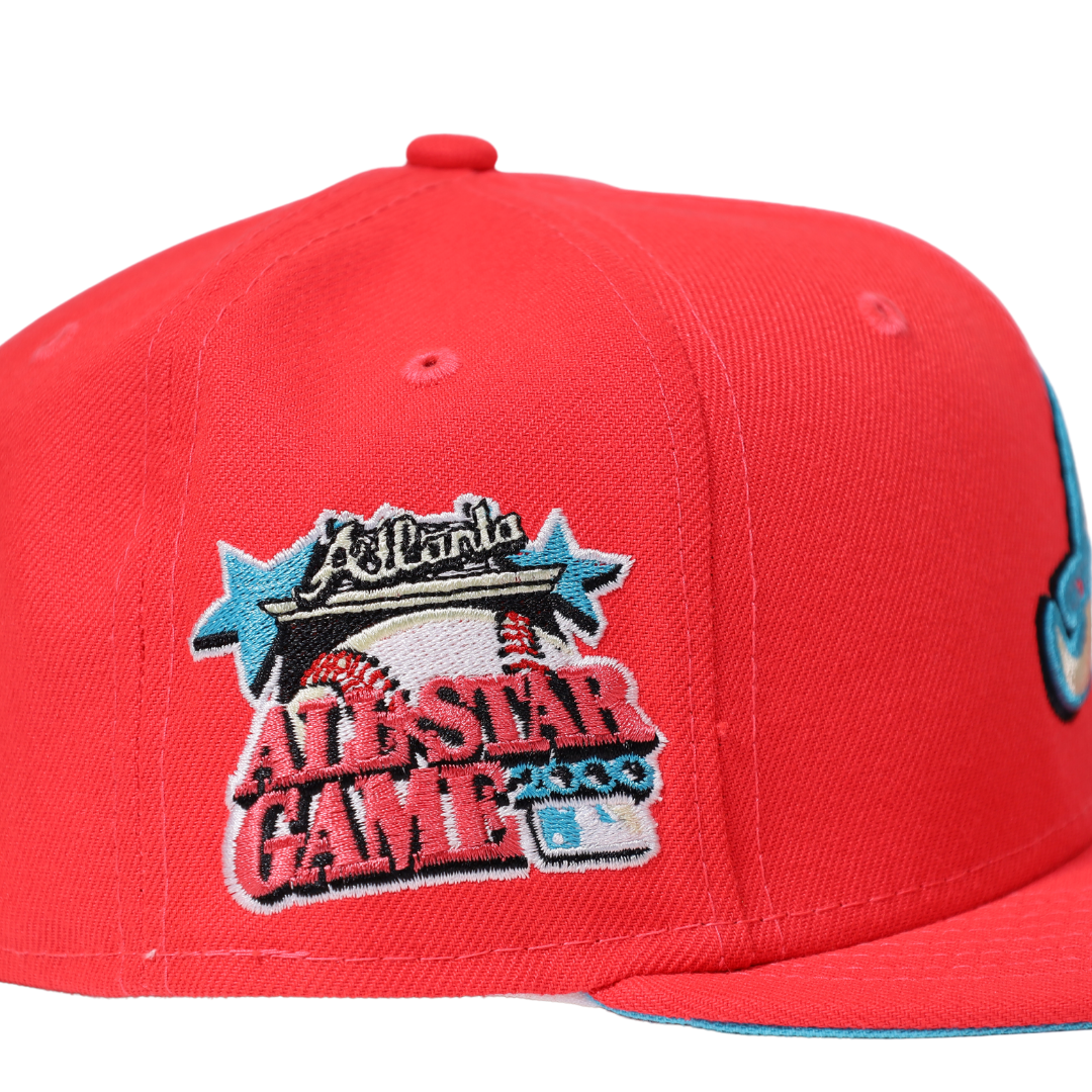 This New Era Atlanta Braves 2000 All-Star Game 59FIFTY Fitted Hat has a six panel structured high crown and embroidered eyelets with a fabric squatchee button. The fitted cap has a flat bill with a sweatband. The front panel features the Atlanta Braves logo embroidery.