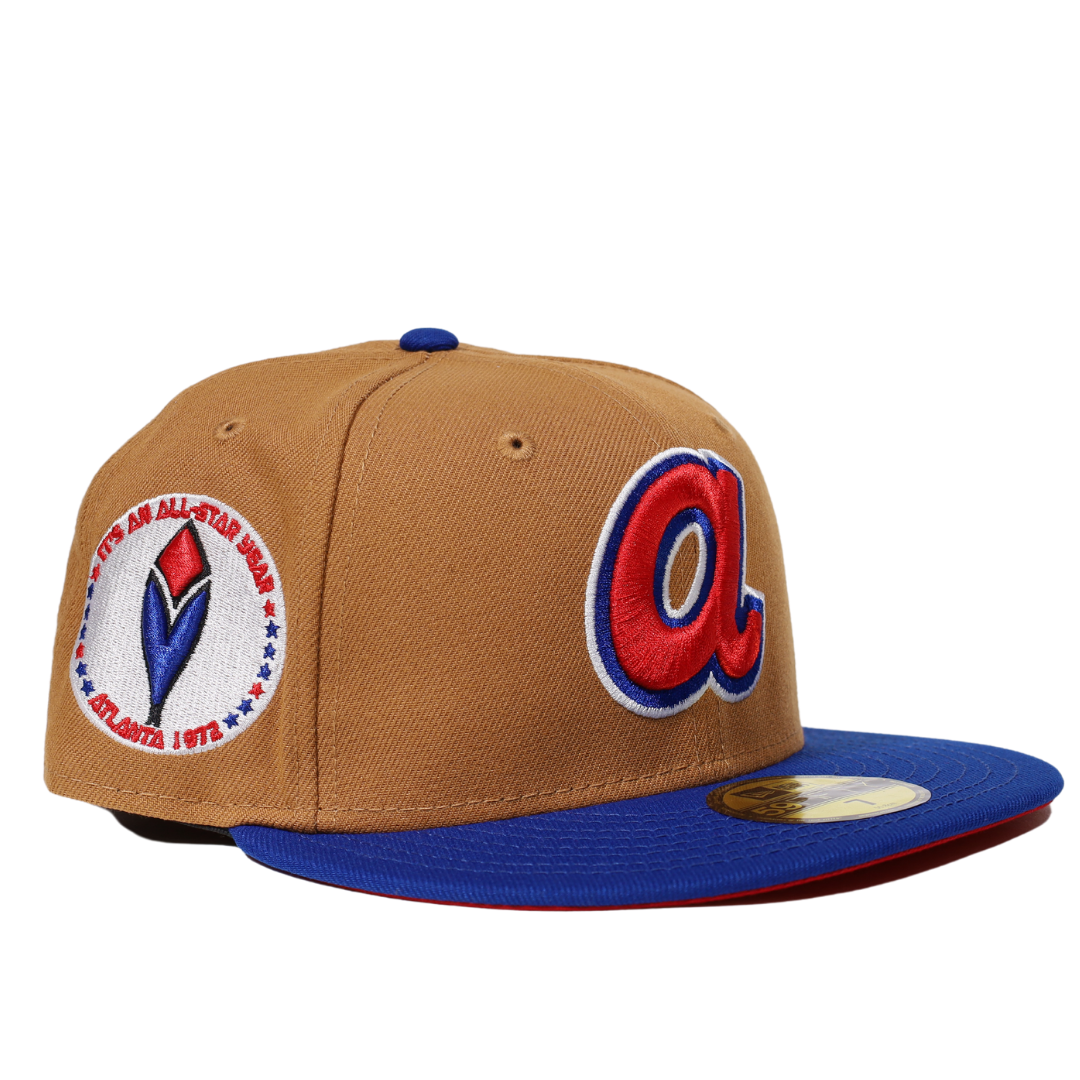 This New Era Atlanta Braves 1972 All-Star Game 59FIFTY Fitted Hat has a six panel structured high crown and embroidered eyelets with a fabric squatchee button. The fitted cap has a flat bill with a sweatband. The front panel features the Atlanta Braves logo embroidery.