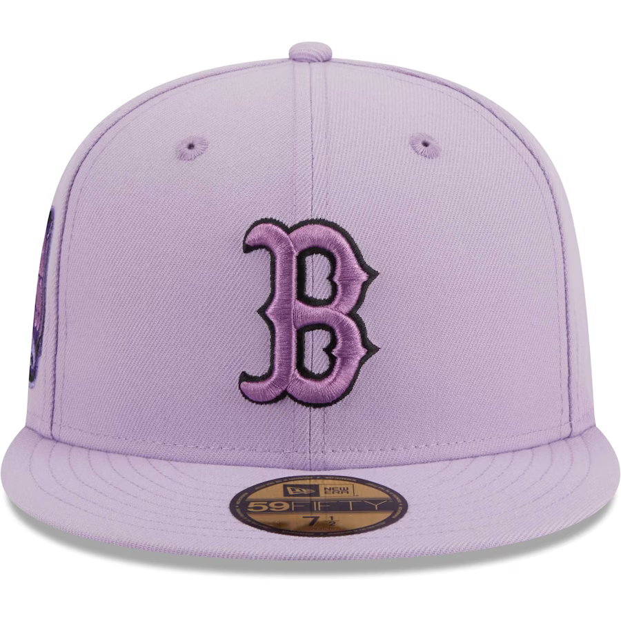 Enhance your collection of Boston Red Sox headwear with a stunning upgrade courtesy of the Lavender 2023 59FIFTY hat by New Era. This hat boasts an eye-catching design, showcasing the embroidered Boston Red Sox logo on the front panels, along with a unique patch on the side. With its fitted construction, you can count on this cap to provide a perfect fit.