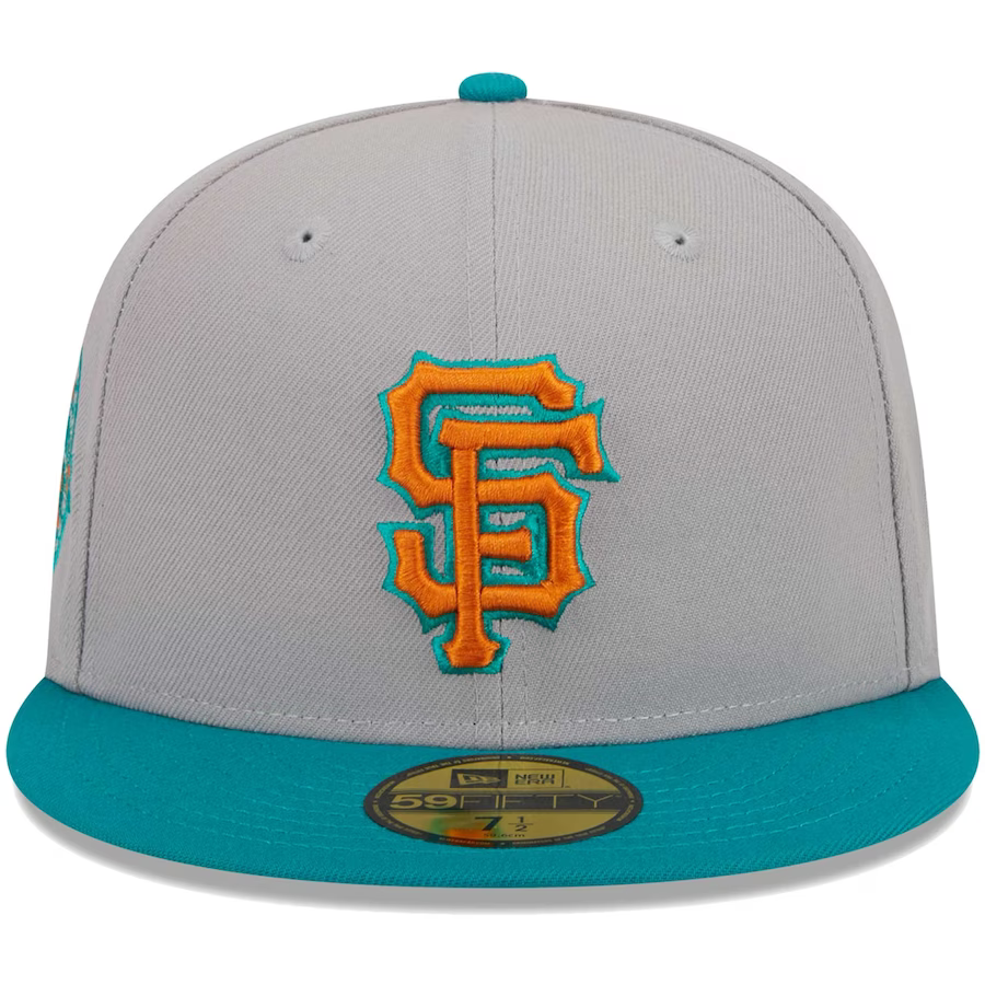 Take your headwear style to new heights effortlessly with this New Era San Francisco Giants Gray/Teal 59FIFTY fitted cap. Displaying your unwavering loyalty to the team is a piece of cake, thanks to the captivating embroidered San Francisco Giants graphics on the crown and a distinctive patch on the side.