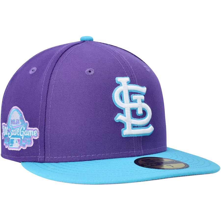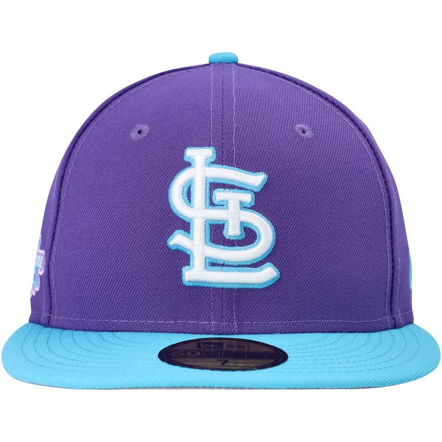 Celebrate your love for the St. Louis Cardinals with the eye-catching New Era Vice 59FIFTY hat. Inspired by the dazzling city lights, this hat boasts a captivating purple and blue color scheme, adding a distinct touch to your favorite team's iconic aesthetic. The embroidered St. Louis Cardinals logo on the right-side panel adds the perfect final detail to this fitted cap, making it a must-have accessory to showcase your unwavering fandom.