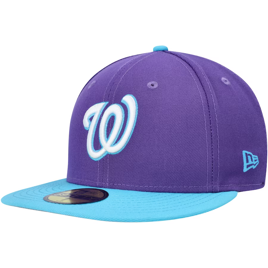 Celebrate your love for the Washington Nationals with the eye-catching New Era Vice 59FIFTY hat. Inspired by the dazzling city lights, this hat boasts a captivating purple and blue color scheme, adding a distinct touch to your favorite team's iconic aesthetic. The embroidered Washington Nationals logo on the right-side panel adds the perfect final detail to this fitted cap, making it a must-have accessory to showcase your unwavering fandom.
