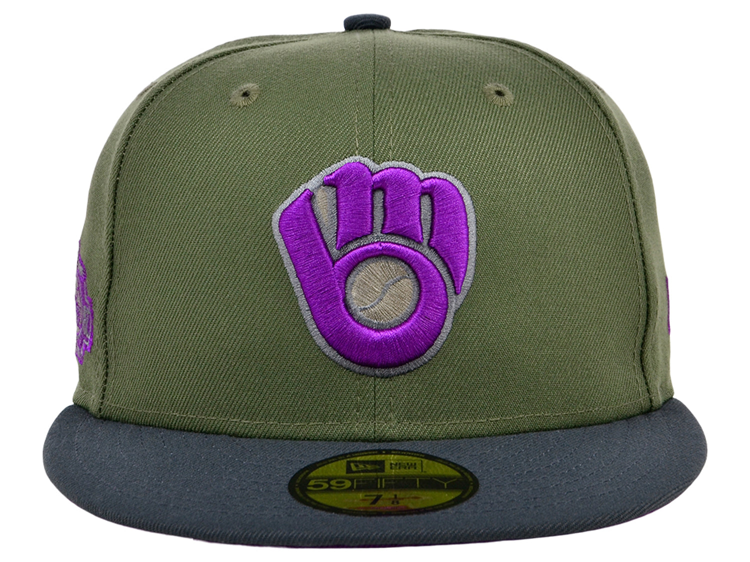 Lids Hat Drop is excited to bring unique and exclusive colorways to your favorite MLB team. This New Era Milwaukee Brewers Mossy Haze 59FIFTY fitted hat has a high crown, is structured with a flat rounded bill, threaded rivets, and a team patch to highlight the achievements. Find the look the fits your collection or wardrobe.