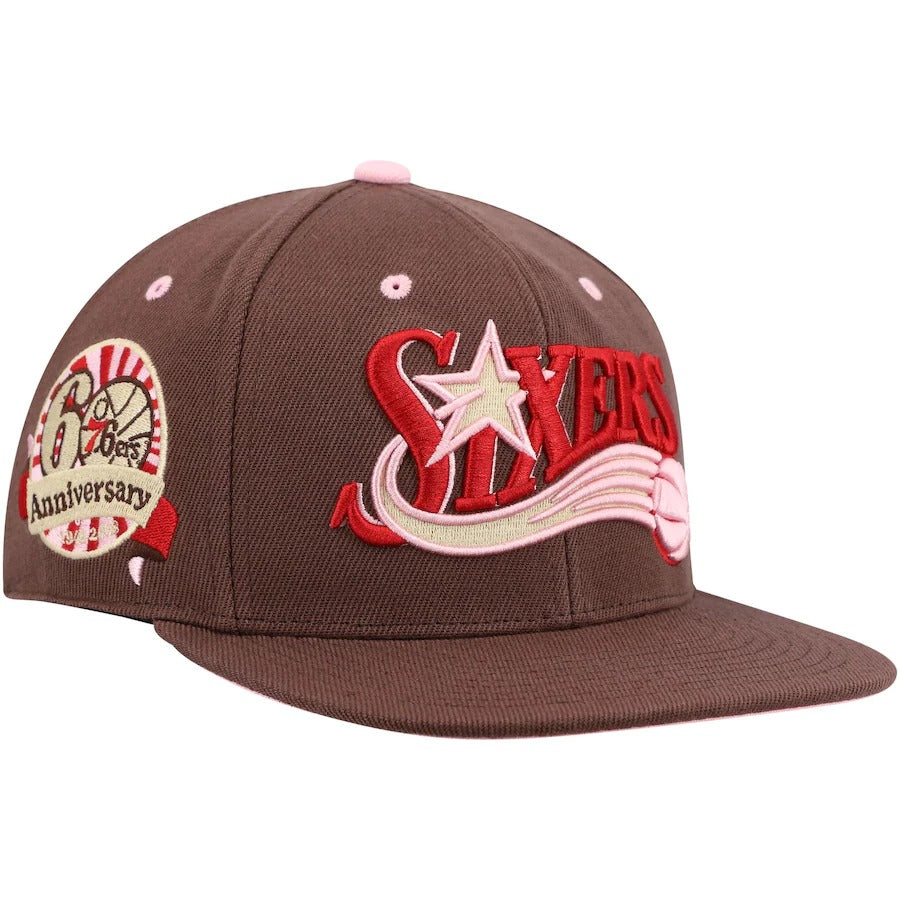 Show off your sizzlin' team spirit when you rock this Anniversary Hardwood Classics Brown Sugar Bacon hat from Mitchell & Ness . Designed with embroidered throwback Philadelphia 76ers details, this fitted cap is great for game days or everyday wear. The structured build always ensures a fresh feel, making it a timeless addition to your Philadelphia 76ers collection.