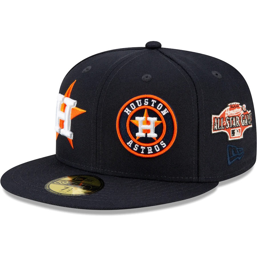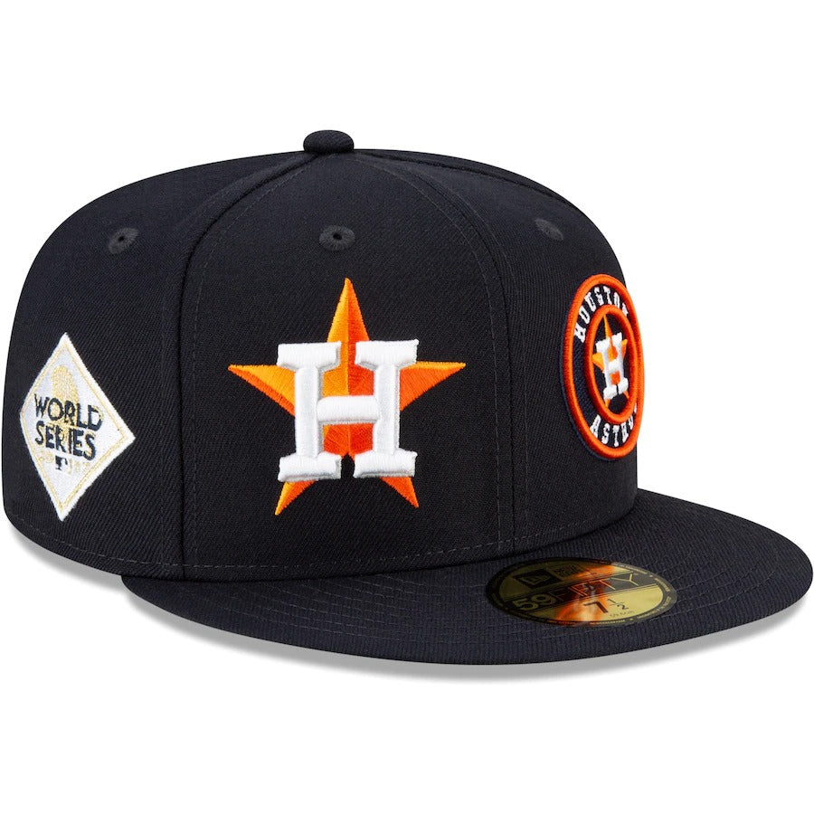 Show off Houston Astros history from all sides with this Patch Pride 59FIFTY hat by New Era. Its eye-catching design features Houston Astros graphics through the years on every panel. The flat bill also keeps you shaded, while the fitted construction provides a perfect fit.