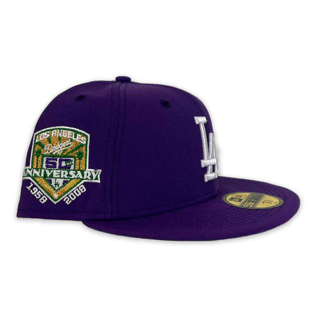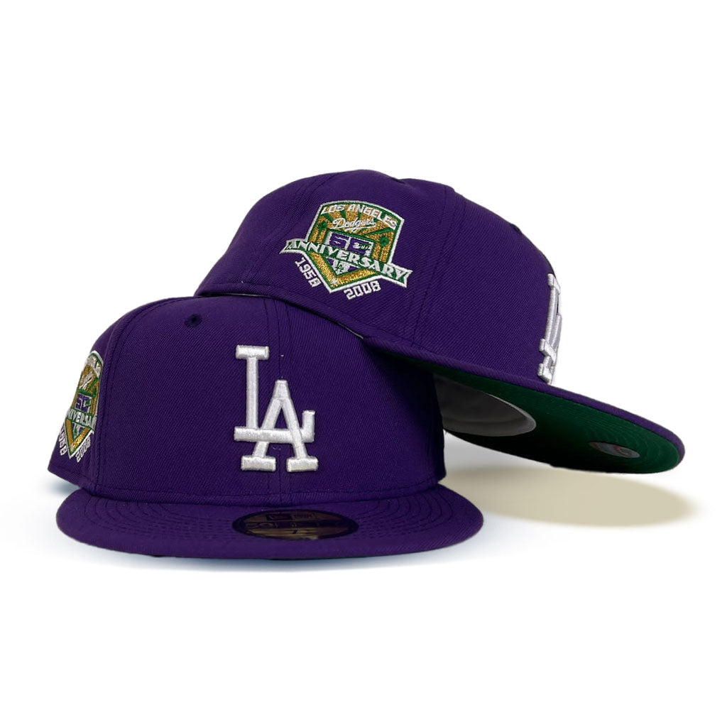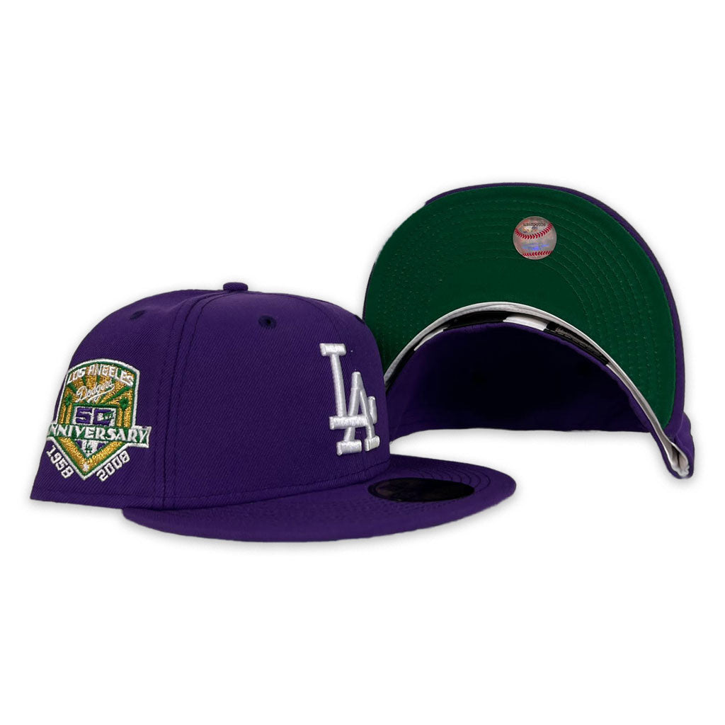 New Era Los Angeles Dodgers Purple 50th Anniversary Green Undervisor 59FIFTY Fitted Hat