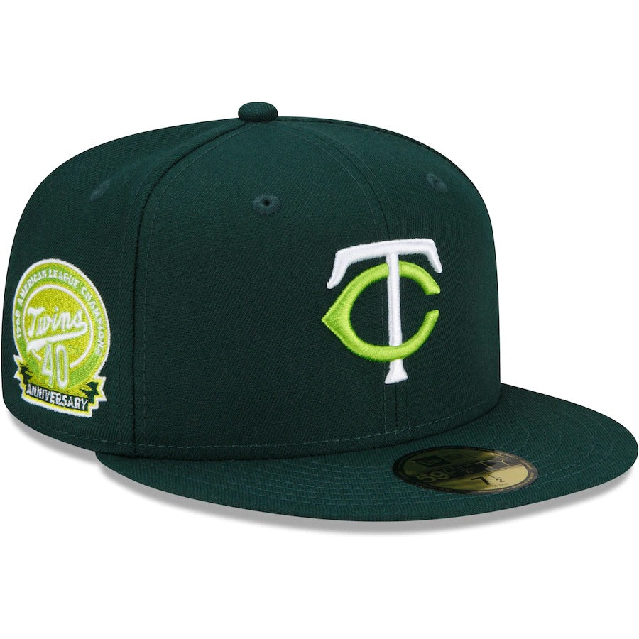 New Era Minnesota Twins Green 1965 American League Champions 40th Anniversary Color Fam Lime Undervisor 59FIFTY Fitted Hat