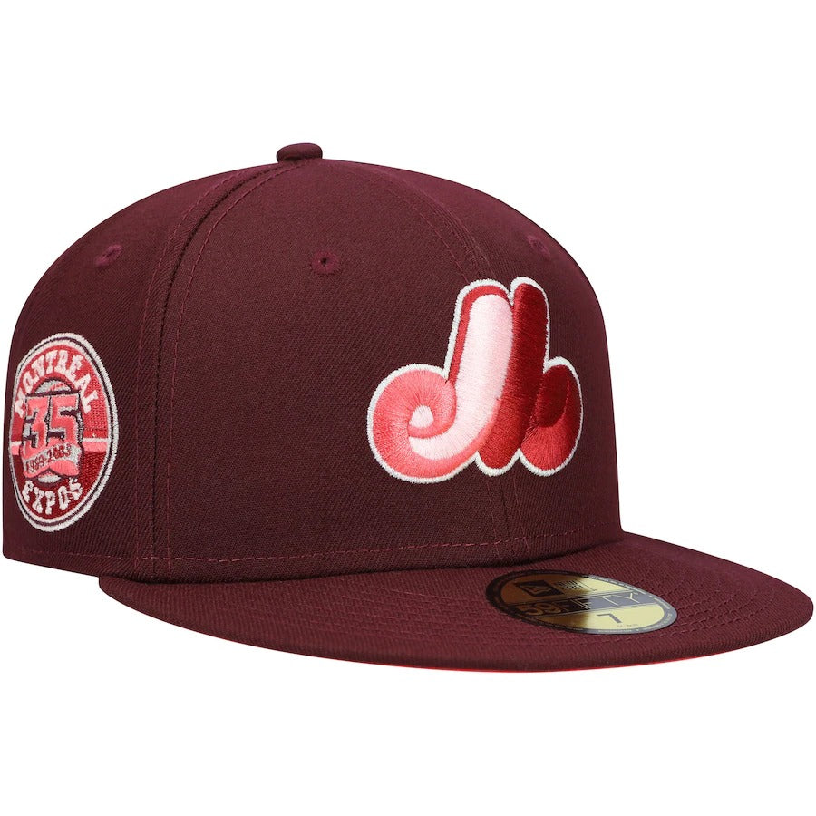 Enjoy a bold display of your unshakable Montreal Expos pride with this stylish Color Fam Lava Red Undervisor 59FIFTY fitted hat. Featuring an eye-catching maroon colorway and distinct details on the undervisor, this fitted cap offers a unique twist on your Montreal Expos fandom. In addition, the structured fit and flat bill offer the right combination of comfort and appeal that are sure to make this cap a new go-to.