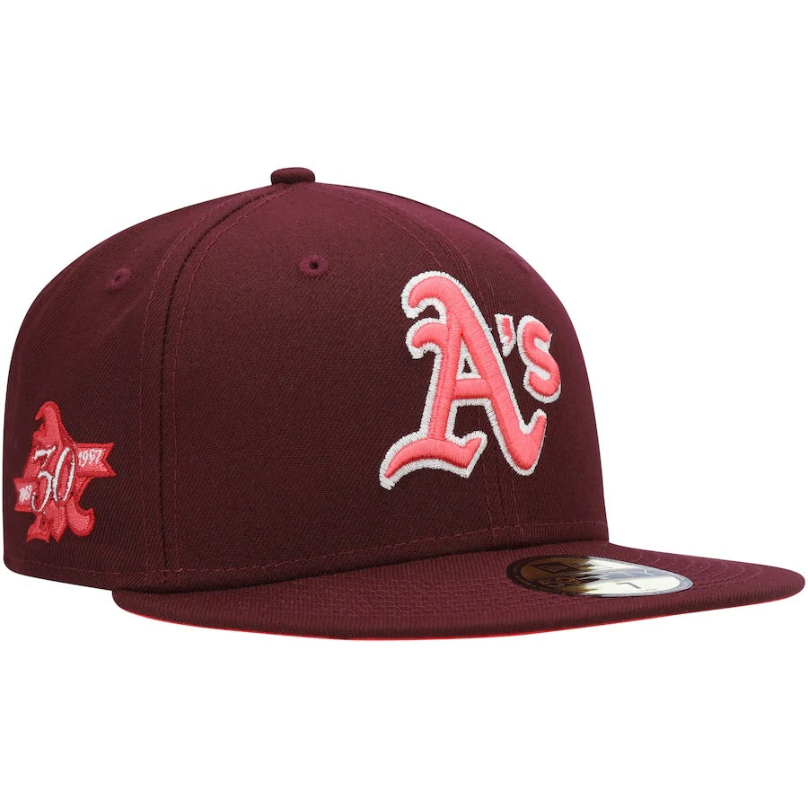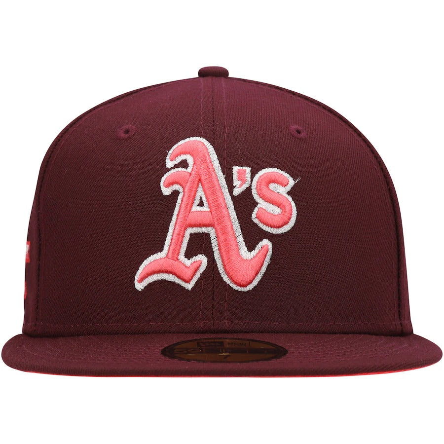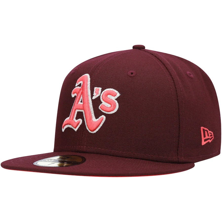 Enjoy a bold display of your unshakable Oakland Athletics pride with this stylish Color Fam Lava Red Undervisor 59FIFTY fitted hat. Featuring an eye-catching maroon colorway and distinct details on the undervisor, this fitted cap offers a unique twist on your Oakland Athletics fandom. In addition, the structured fit and flat bill offer the right combination of comfort and appeal that are sure to make this cap a new go-to.