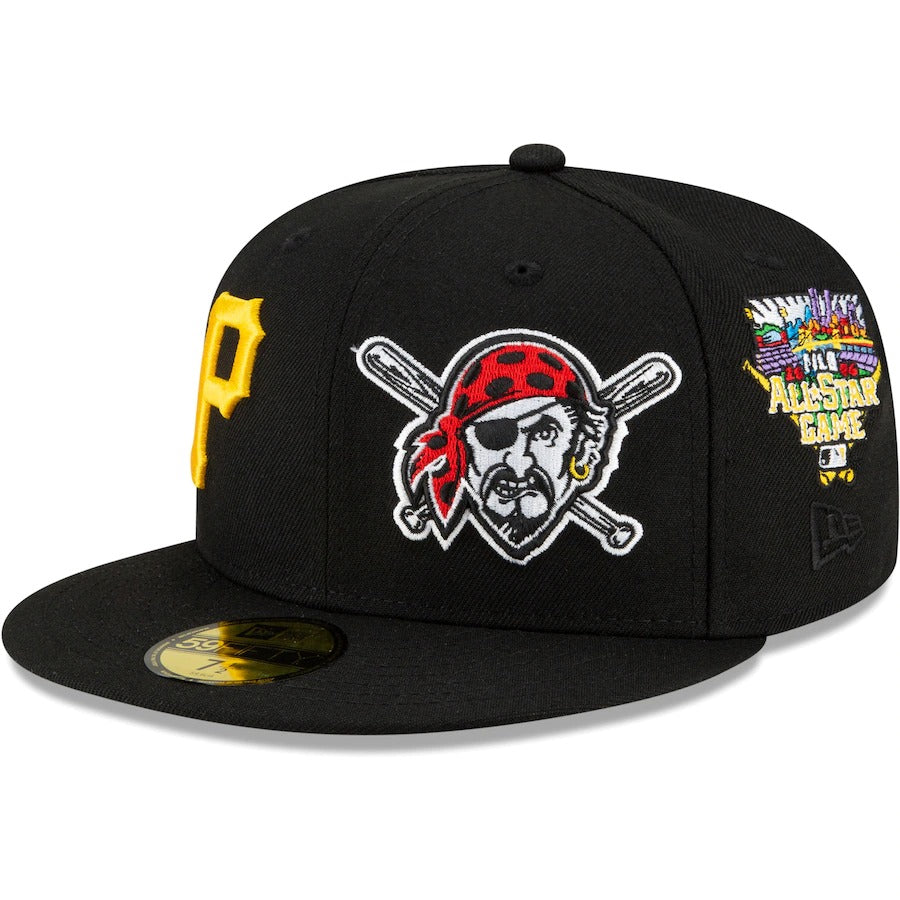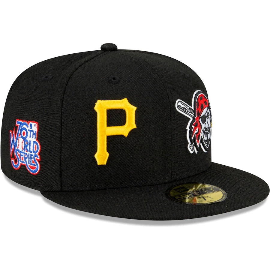 Show off Pittsburgh Pirates history from all sides with this Patch Pride 59FIFTY hat by New Era. Its eye-catching design features Pittsburgh Pirates graphics through the years on every panel. The flat bill also keeps you shaded, while the fitted construction provides a perfect fit.