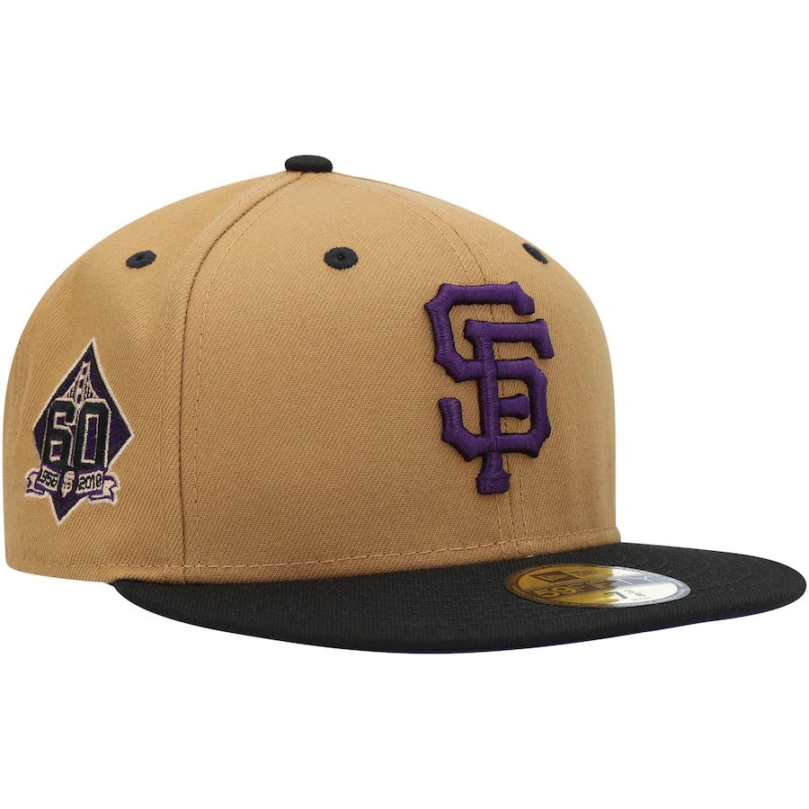 New Era San Francisco Giants Tan 60th Anniversary Purple Undervisor 59FIFTY Fitted Hat