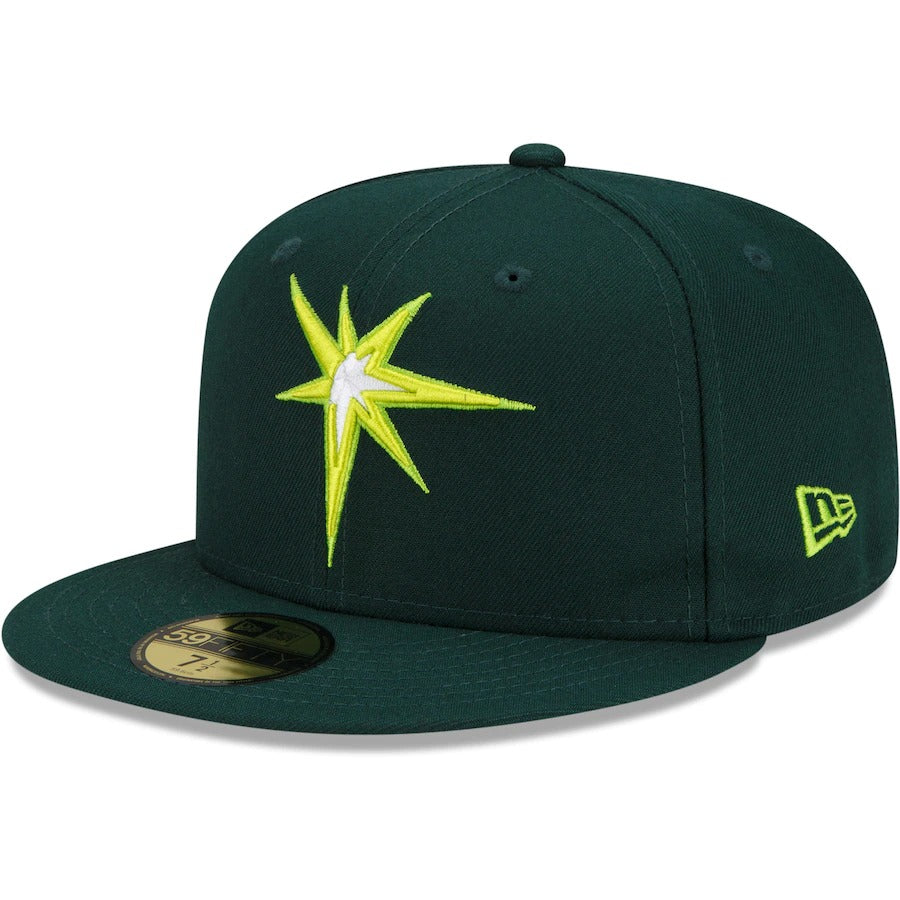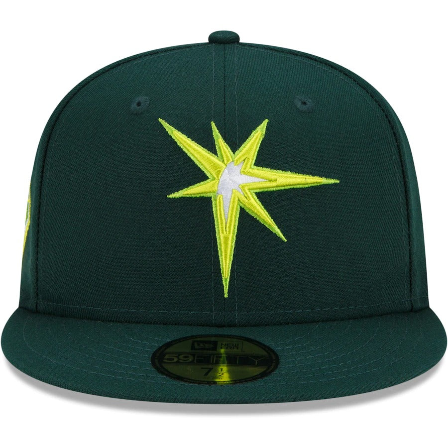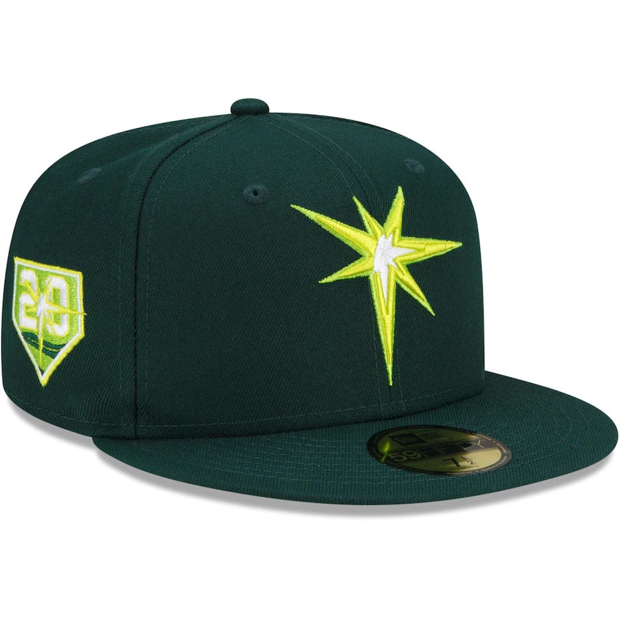 Take a unique approach to celebrating Tampa Bay Rays history with this 20th Anniversary Color Fam 59FIFTY hat by New Era. Its bright colorway features a lime undervisor that complements the team graphics. A fitted closure also ensures this Tampa Bay Rays cap always has a perfect fit.