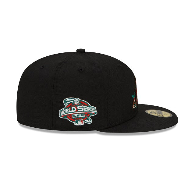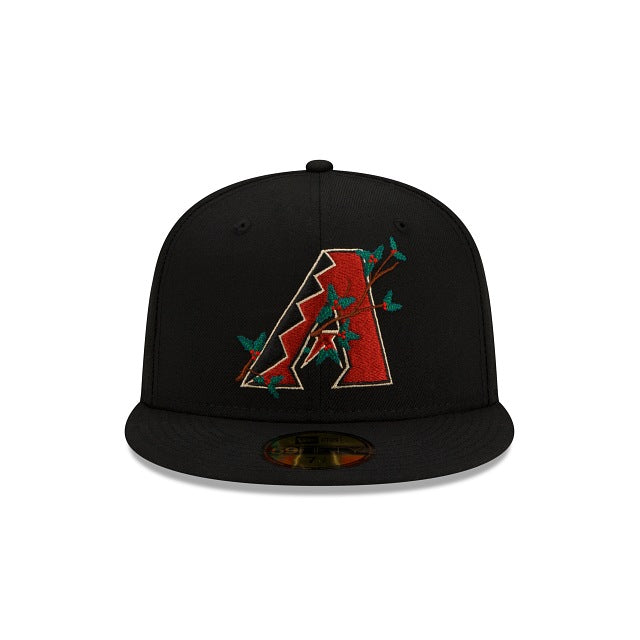 Unwrap your new favorite Fitted with the Arizona Diamondbacks Holly 59FIFTY Fitted Cap featuring an embroidered Diamondbacks logo intertwined with seasonal mistletoe leaves at the front panels, a World Series patch at the right-wear side and a team logo embroidered at the rear.