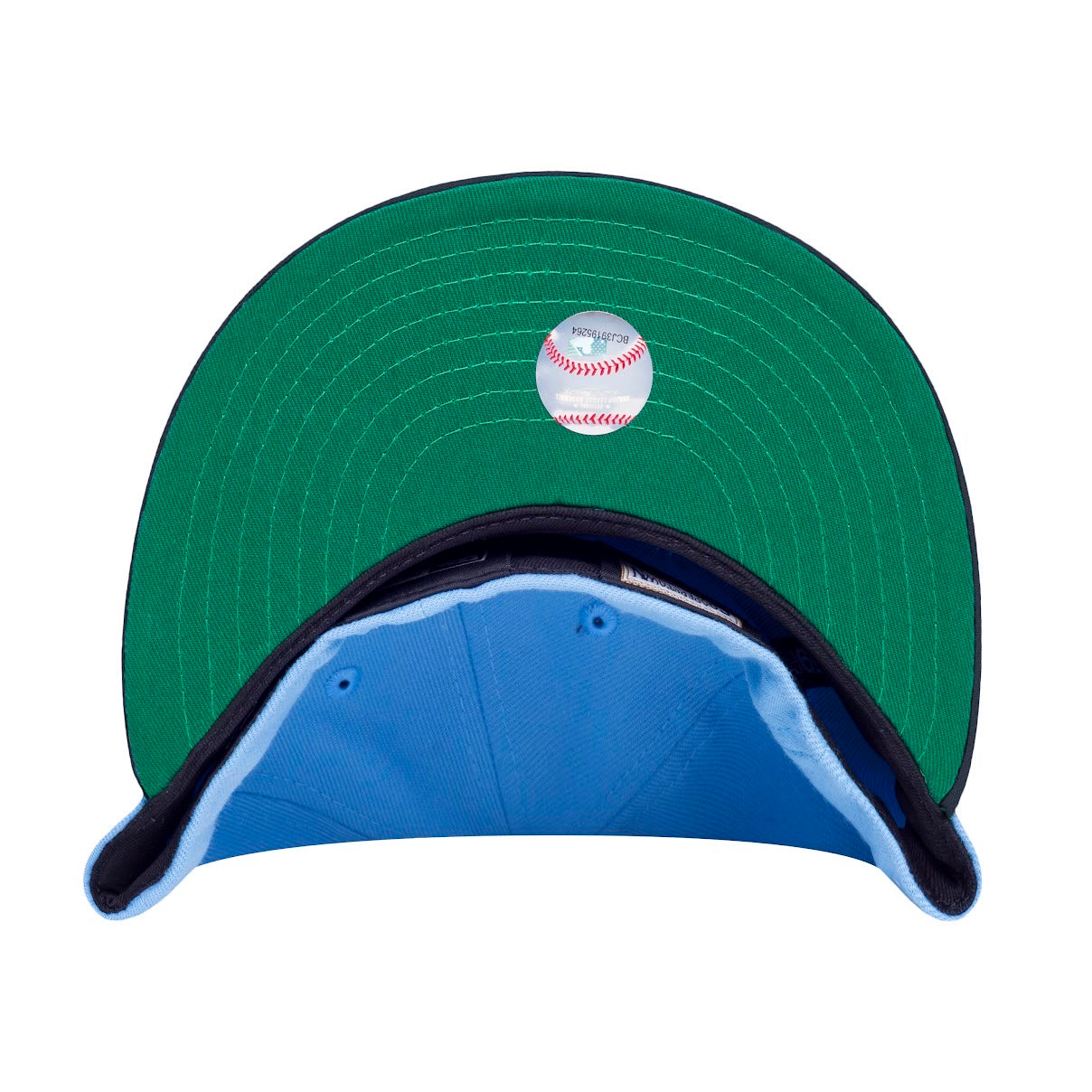 This Detroit Tigers fitted hat was released by Leaders 1354. The fitted has a _ six panel structured high crown and embroidered eyelets with a _ fabric squatchee button. The flat bill of the cap is _ with a _ undervisor and _ sweatband. The front panel features the Detroit Tigers logo embroidery and a _ side patch embroidery on the right panel. The left panel of the fitted displays the New Era logo and the official MLB Batterman logo embroidery on the rear crown.