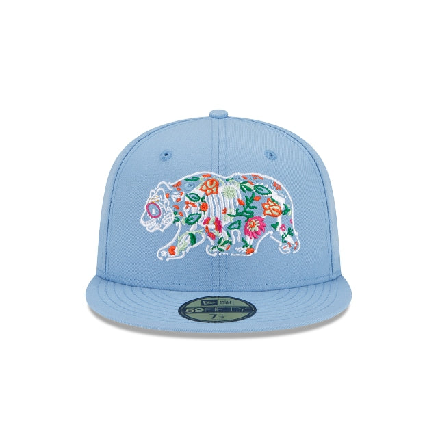 Celebrate the Dia de Los Muertos with the Bear Blue 59FIFTY Fitted Cap featuring an embroidered bear at the front panels, matching New Era flag at the left-wear side and a colorful undervisor.