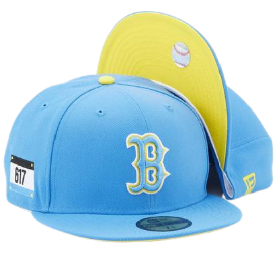 The New Era Boston Red Sox 59Fifty Yellow Under Brim With Side Patch Fitted Hat Is A Structured Cap With A Flat Visor, Full Crown, And Embroidered Graphics. The Closed Back Style Comes In True Fitted Sizing.