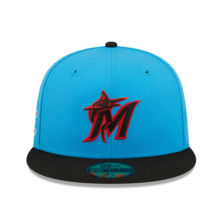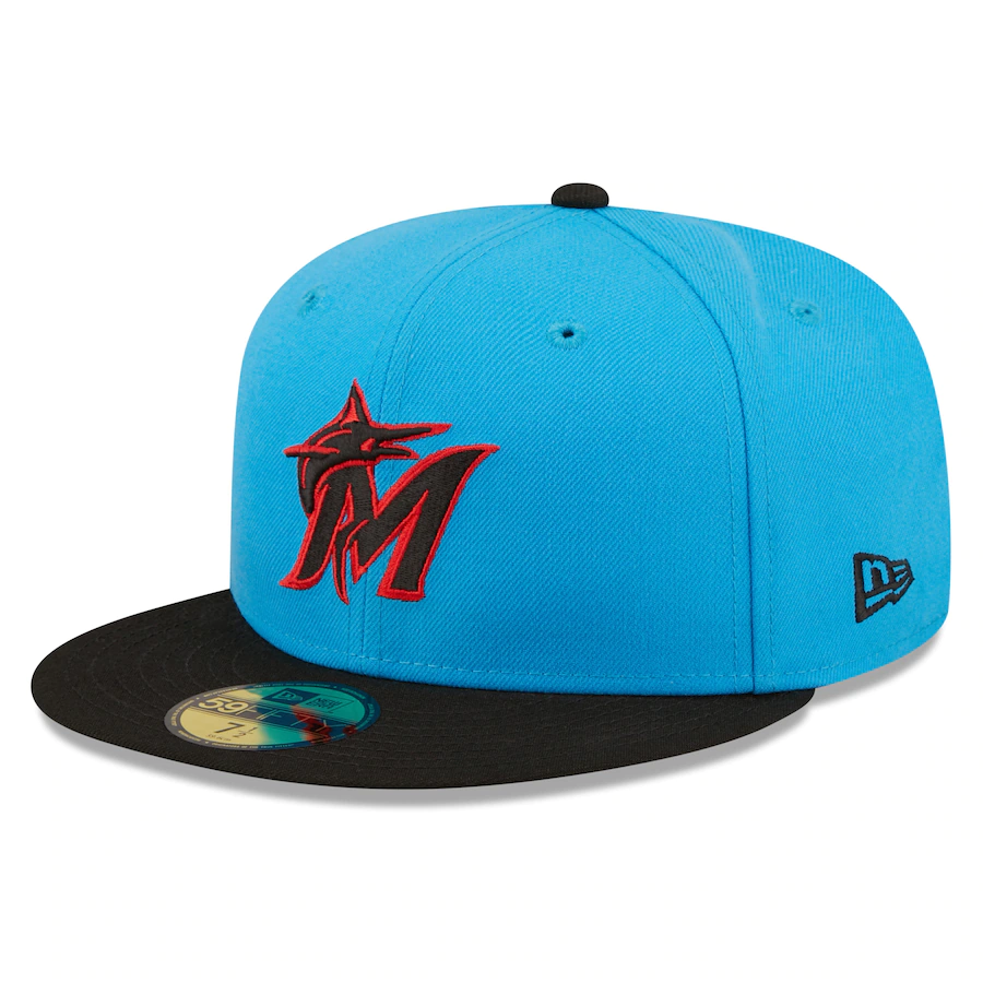 Show your Miami Marlins that you have their back when they get competitive on the diamond with this AKA II 59FIFTY fitted hat from New Era. Featuring raised embroidered graphics on the crown, this cap also has spirited Miami Marlins appliques surrounding the perimeter to give your game day outfit a little added pizzazz. On top of that, the structured construction and flat bill give it a street-ready look.