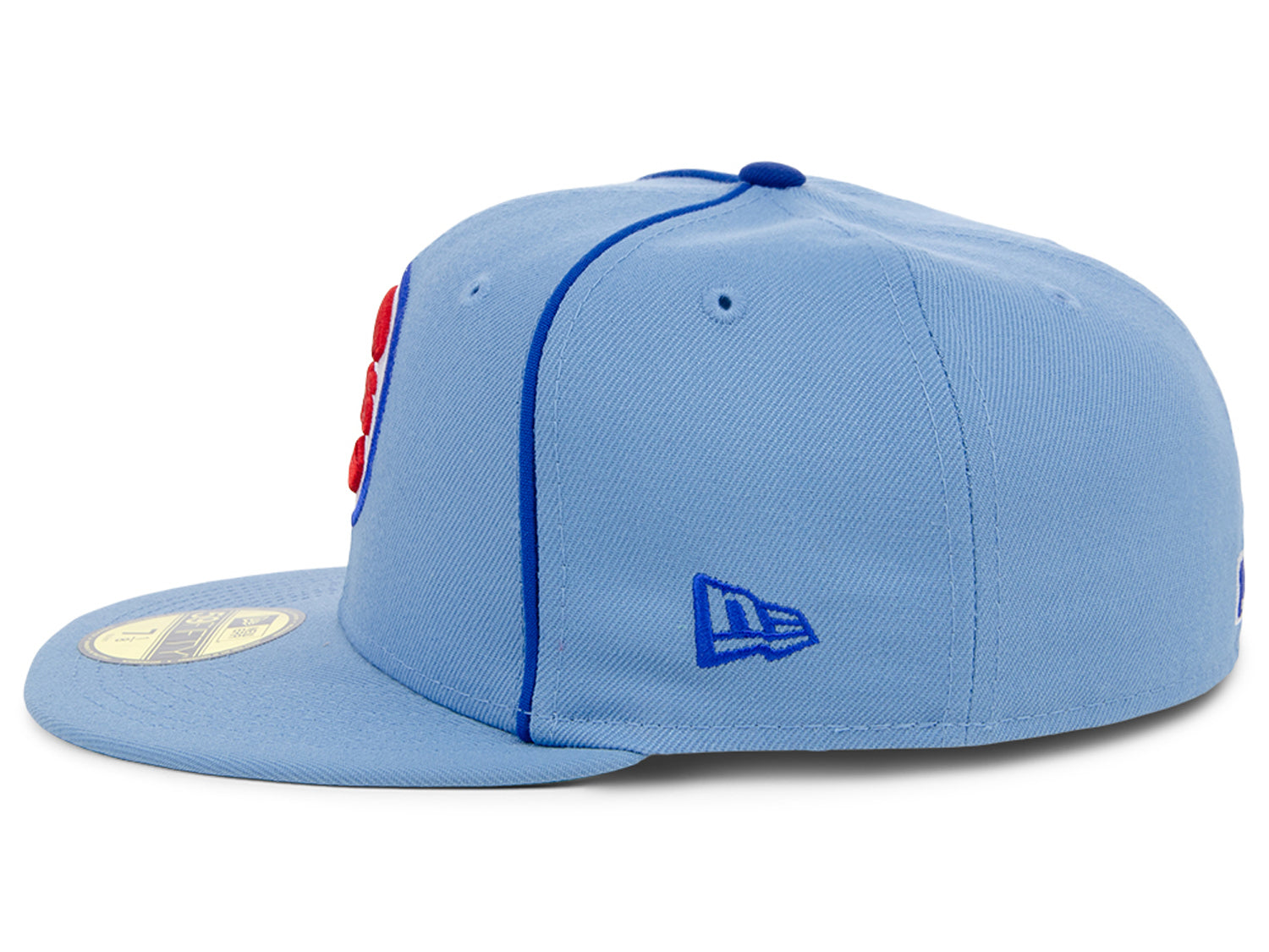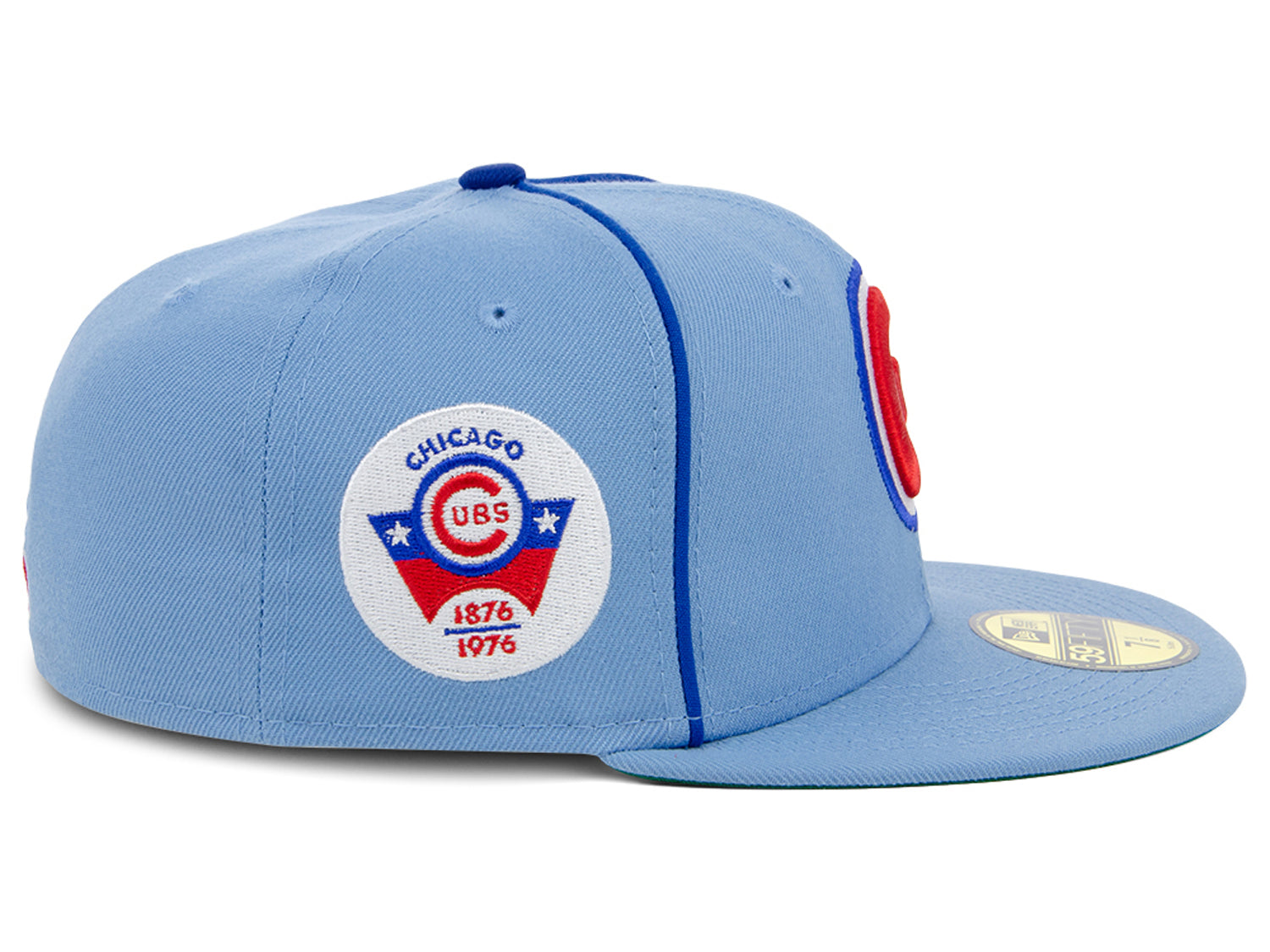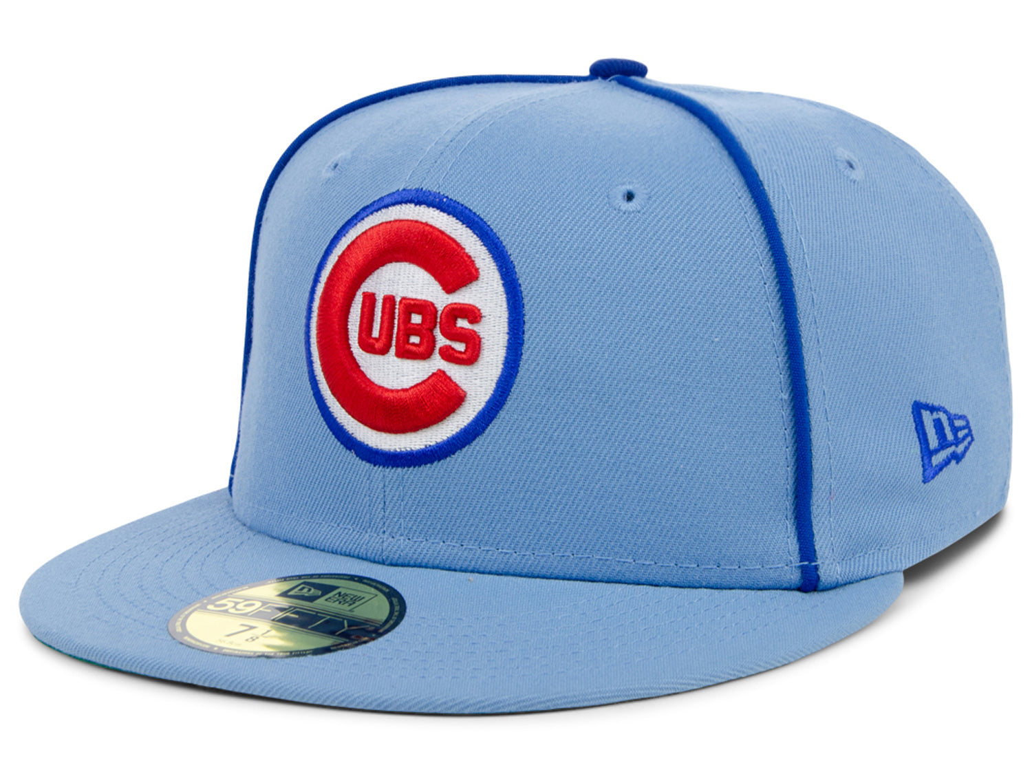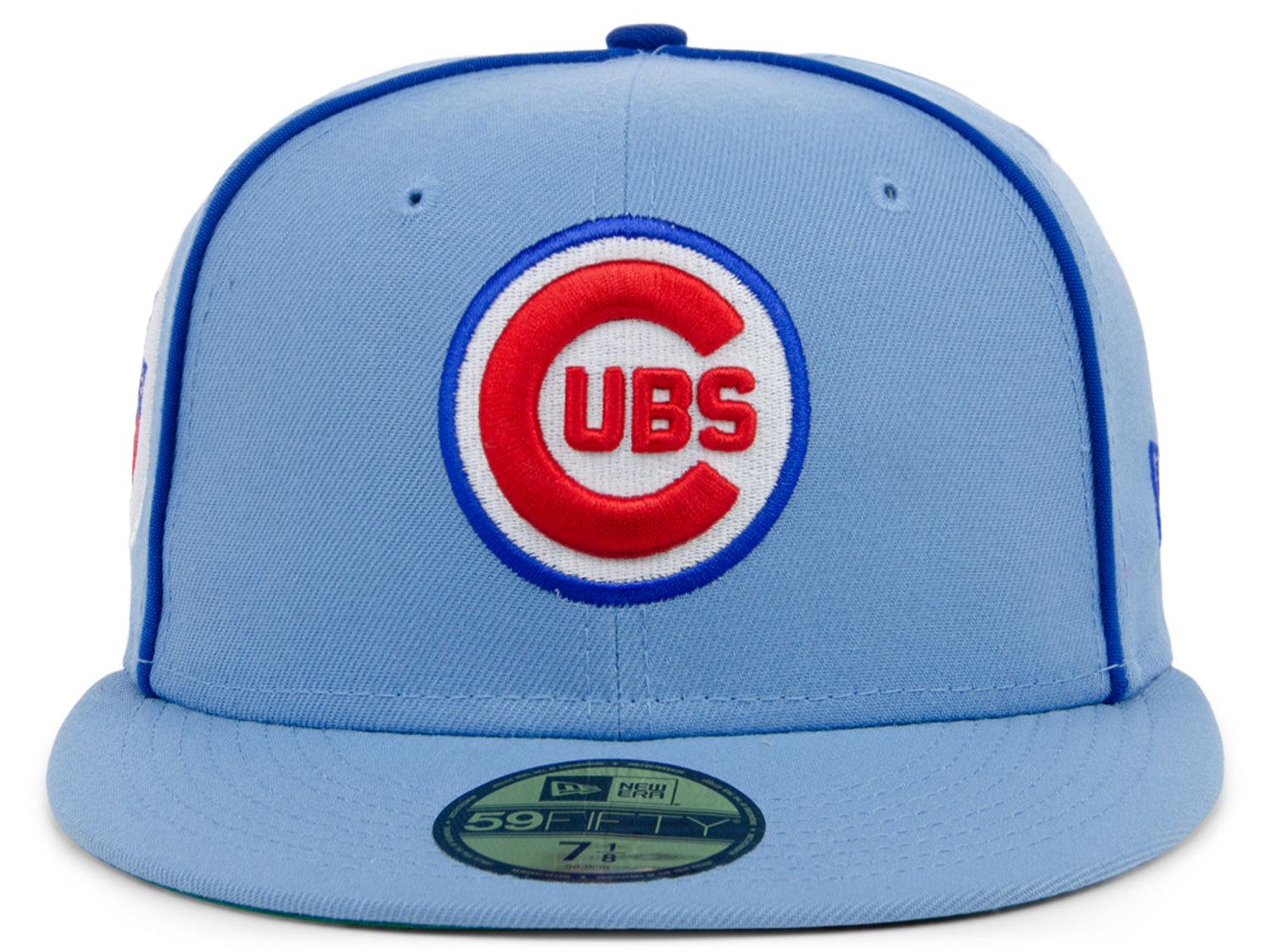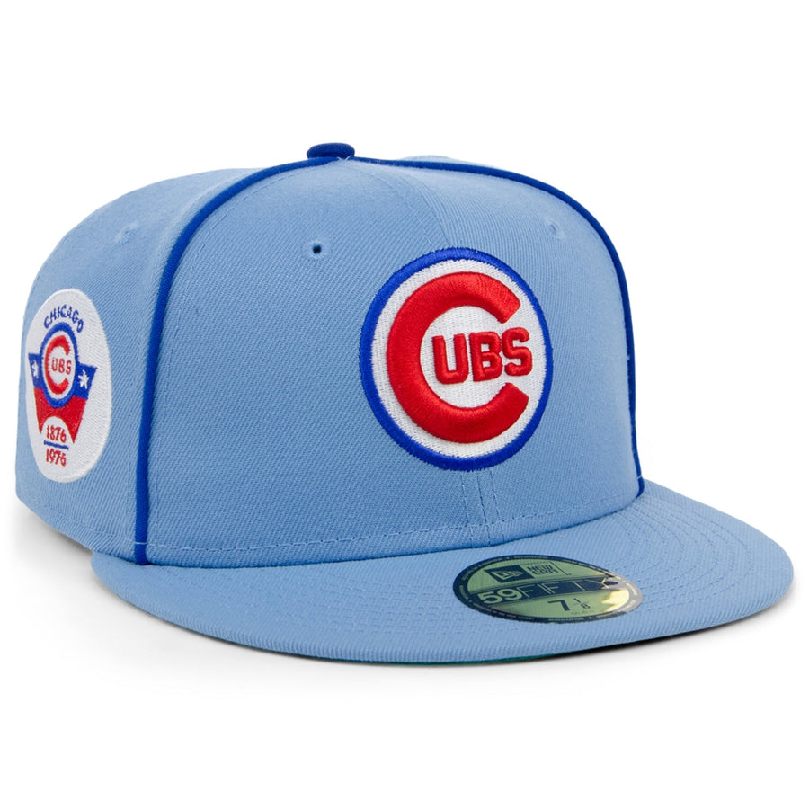 Lids Hat Drop is excited to bring unique and exclusive colorways to your favorite MLB team. This New Era Chicago Cubs Powder Blue Pipe 59FIFTY fitted cap is a high crown hat structured with a flat rounded bill, threaded rivets, and a team patch to highlight the achievements. Find the look that fits your collection or wardrobe.