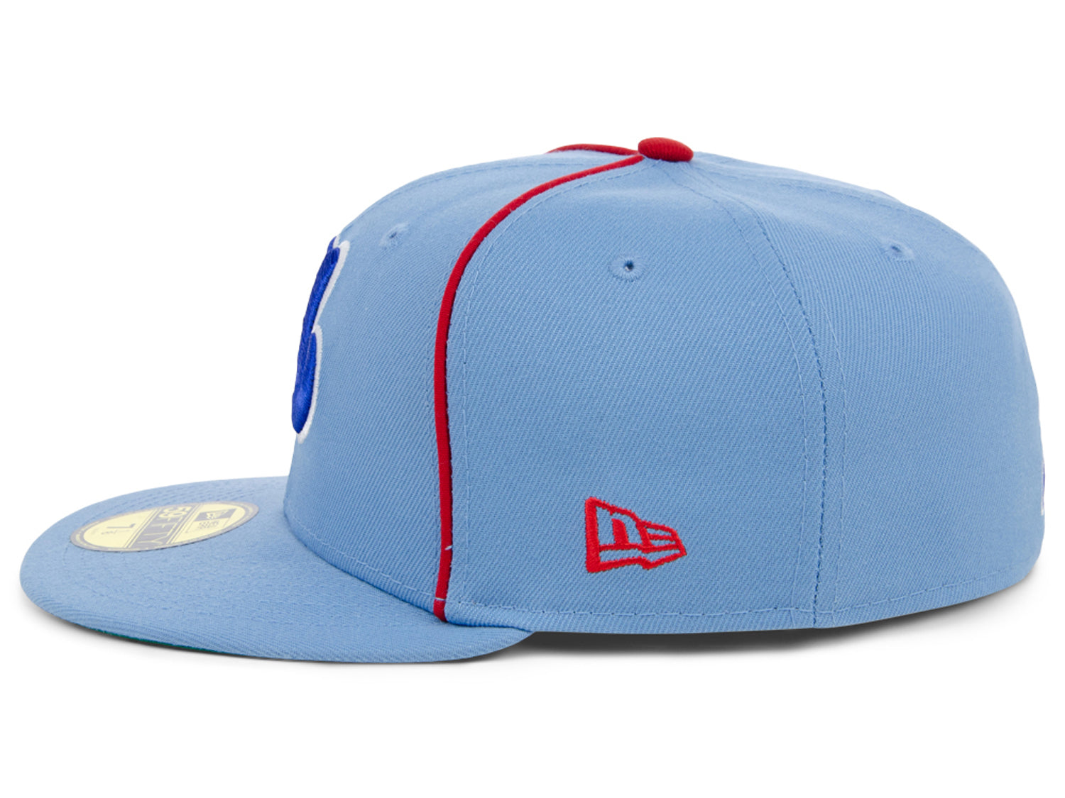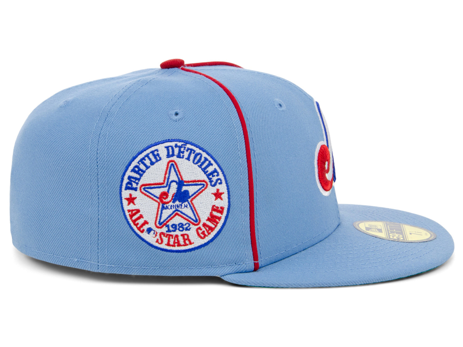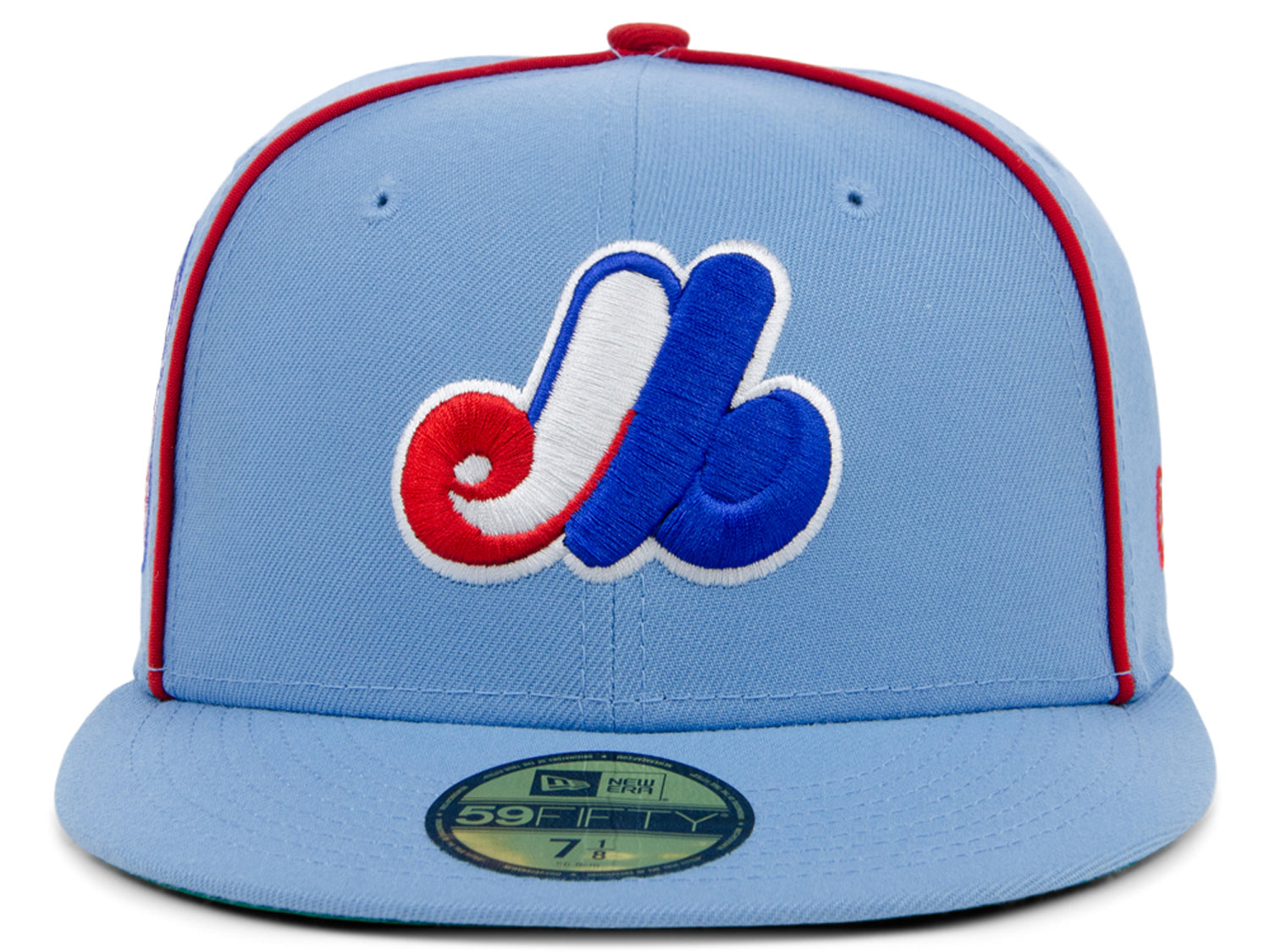 Lids Hat Drop is excited to bring unique and exclusive colorways to your favorite MLB team. This New Era Montreal Expos Powder Blue Pipe 59FIFTY fitted cap is a high crown hat structured with a flat rounded bill, threaded rivets, and a team patch to highlight the achievements. Find the look that fits your collection or wardrobe.