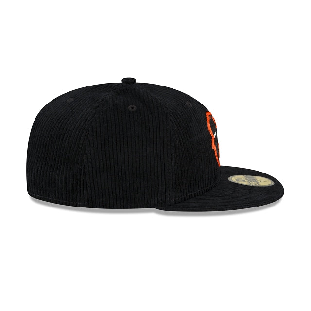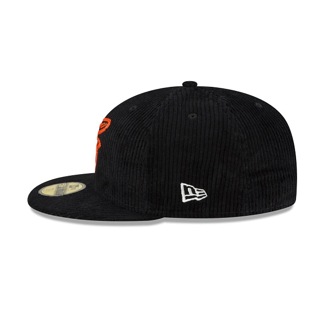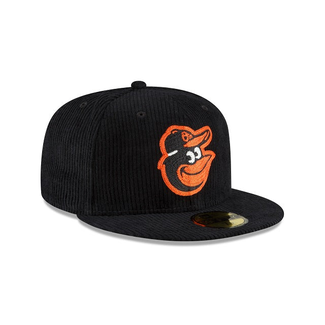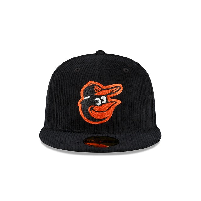 Fit for any occasion. The Baltimore Orioles Corduroy 59FIFTY Fitted Cap features a team color corduroy fabrication with an embroidered Orioles logo at the front panels with a MLB Batterman logo at the rear and a gray undervisor.