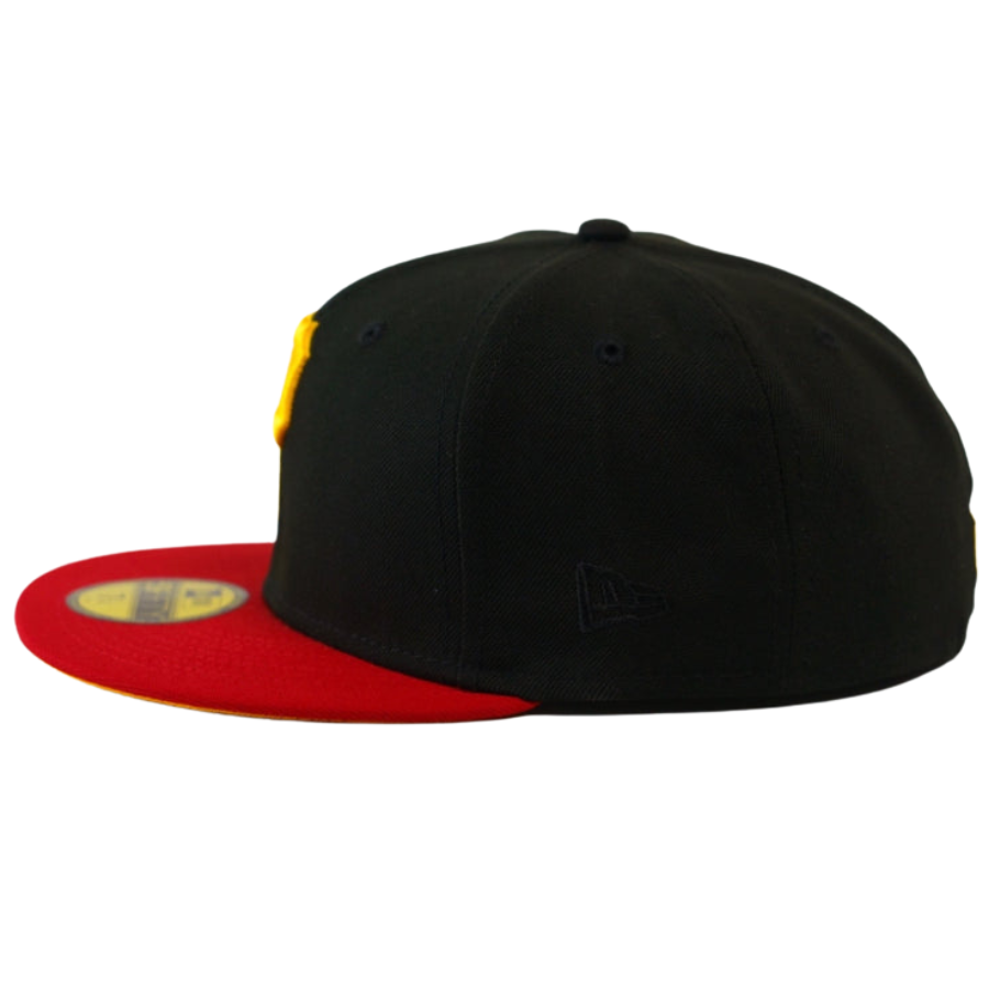 This New Era Pittsburgh Pirates 1959 All-Star Game 59FIFTY Fitted Hat was released by Energie. The fitted has a six panel structured high crown and embroidered eyelets with a fabric squatchee button. The fitted cap has a flat bill with a undervisor and sweatband. The front panel features the Pittsburgh Pirates logo embroidery. The left panel of the fitted displays the New Era logo and the official MLB logo embroidery on the rear crown.