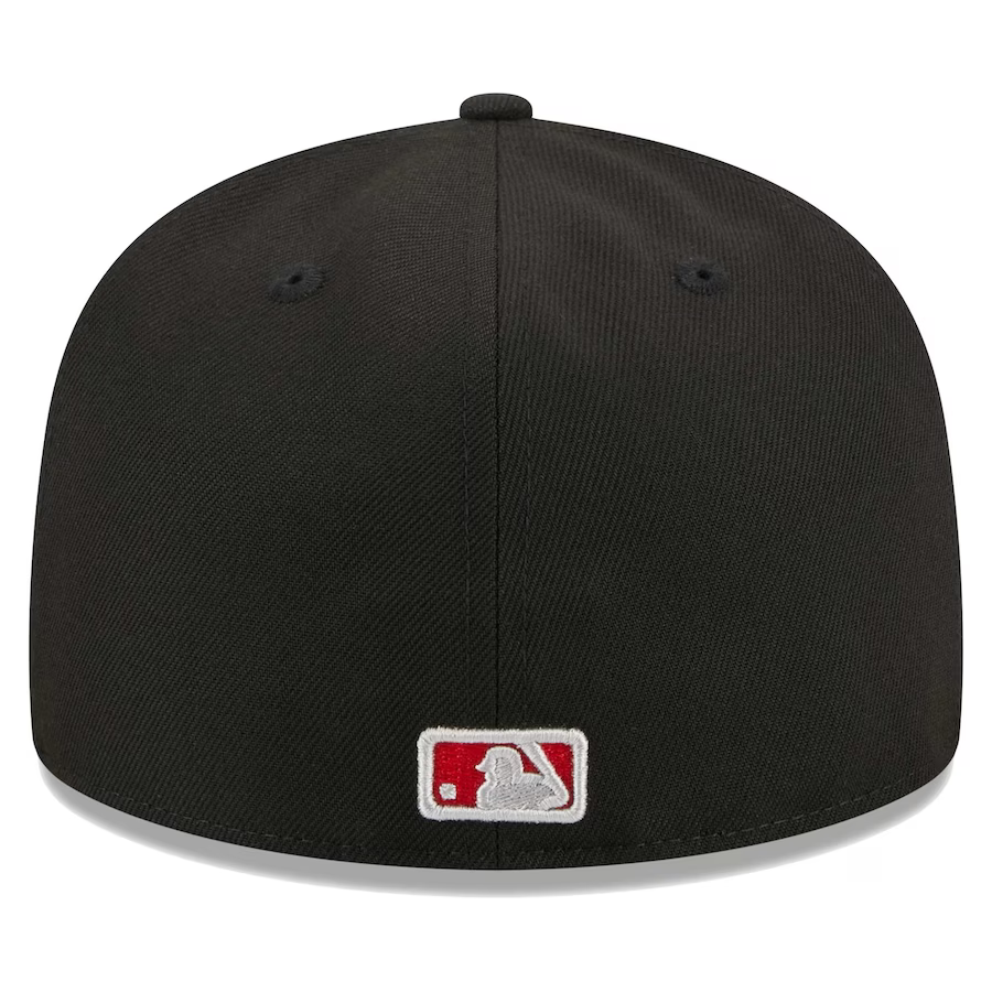 The New Era Black Quilt 59FIFTY hat is a fantastic accessory to show off on game day. It showcases classic Atlanta Braves embroidery on quilted fabric, giving it an authentic and timeless appearance. With its fitted and structured construction, it boasts a modern design that is sure to impress.