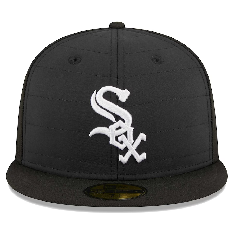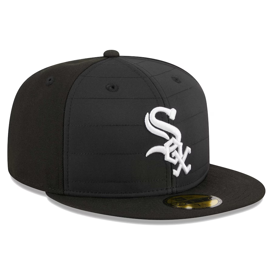 The New Era Black Quilt 59FIFTY hat is a fantastic accessory to show off on game day. It showcases classic Chicago White Sox embroidery on quilted fabric, giving it an authentic and timeless appearance. With its fitted and structured construction, it boasts a modern design that is sure to impress..