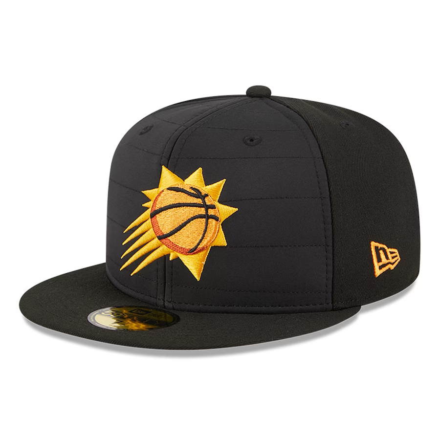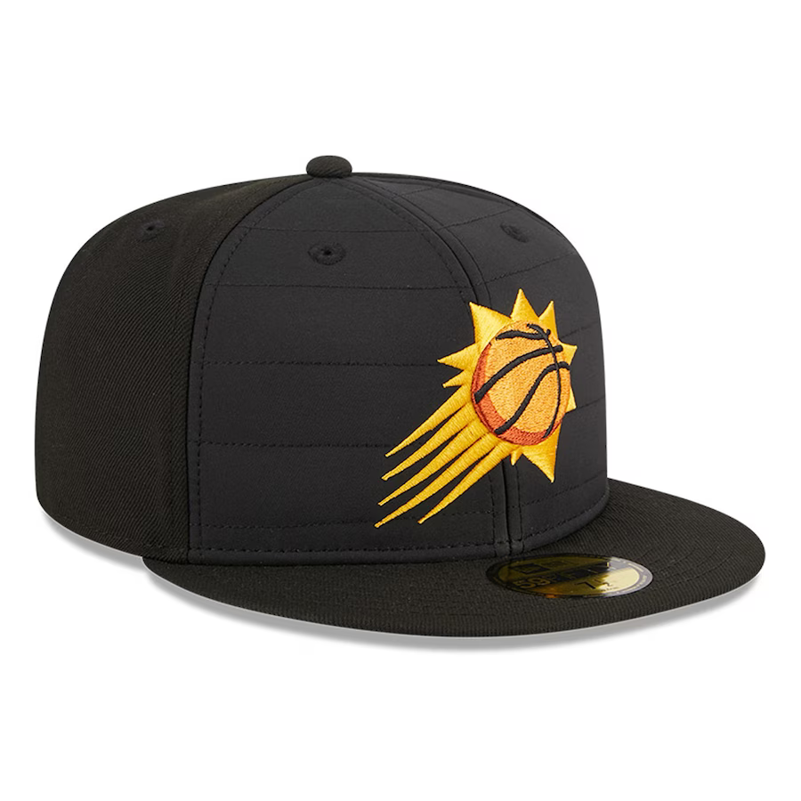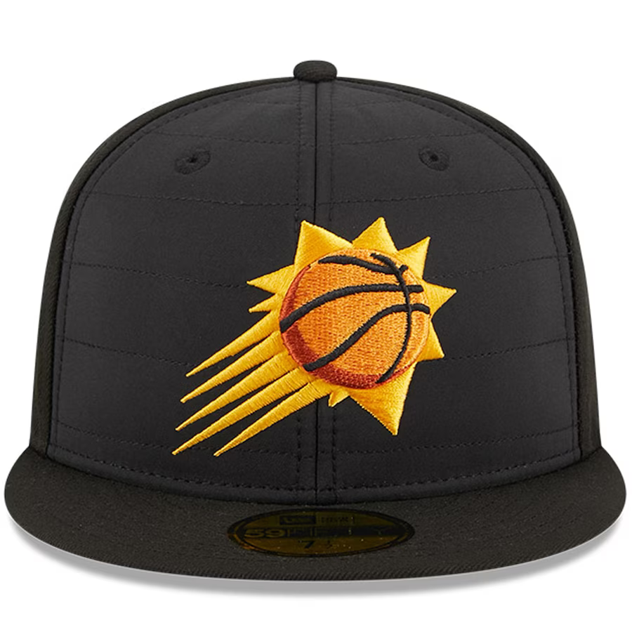 The New Era Black Quilt 59FIFTY hat is a fantastic accessory to show off on game day. It showcases classic Phoenix Suns embroidery on quilted fabric, giving it an authentic and timeless appearance. With its fitted and structured construction, it boasts a modern design that is sure to impress.