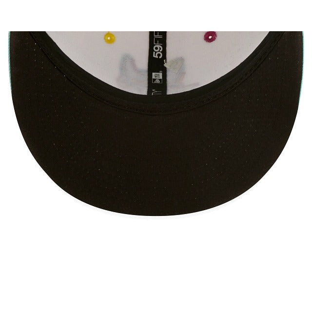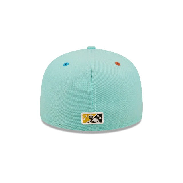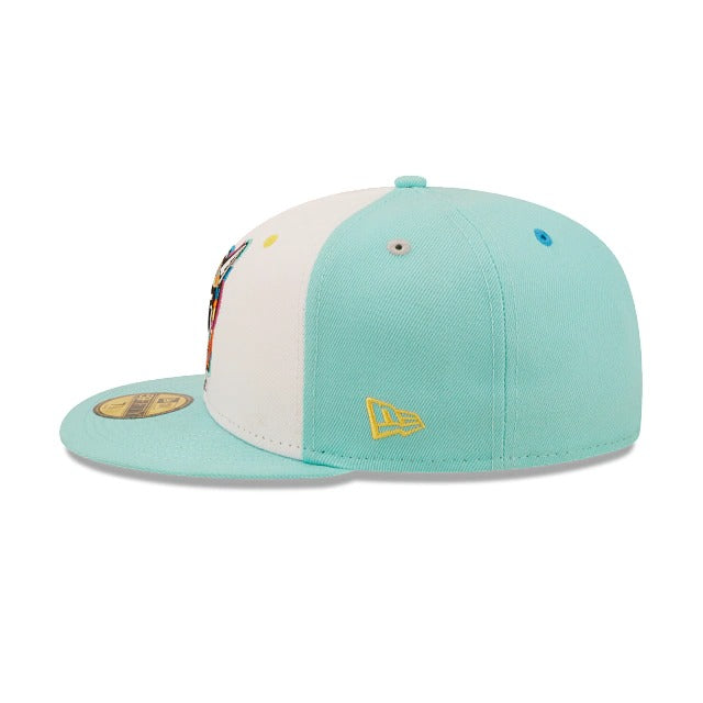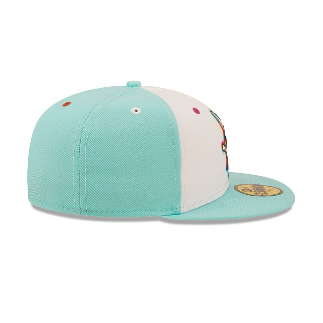 The Hickory Crawdads Copa de la Diversion 59FIFTY Fitted Cap features an embroidered Copa De La Diversion themed Crawdads logo at the front panels with a matching MiLB Batterman logo at the rear.