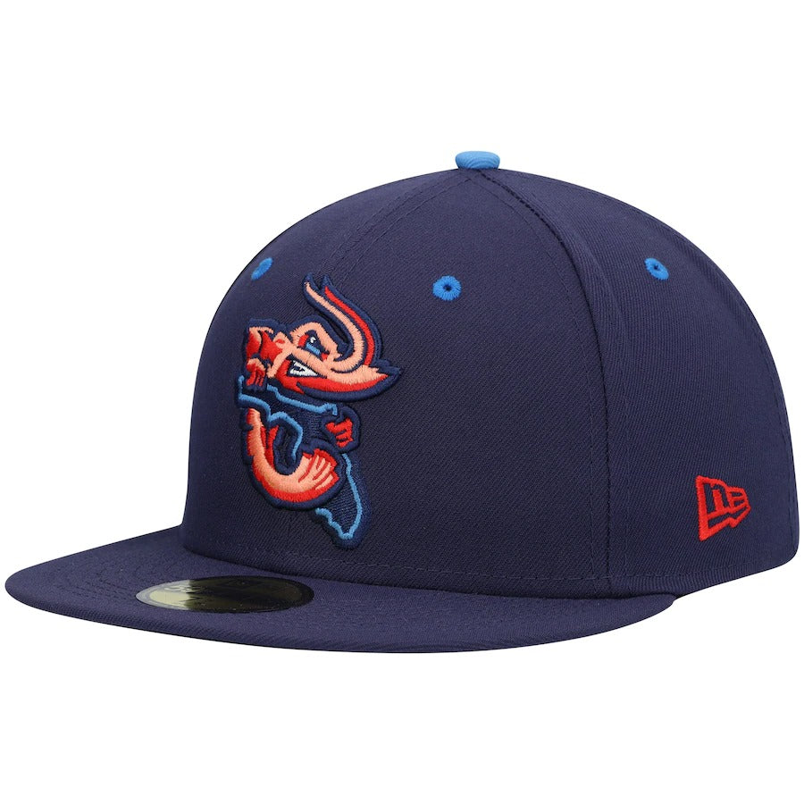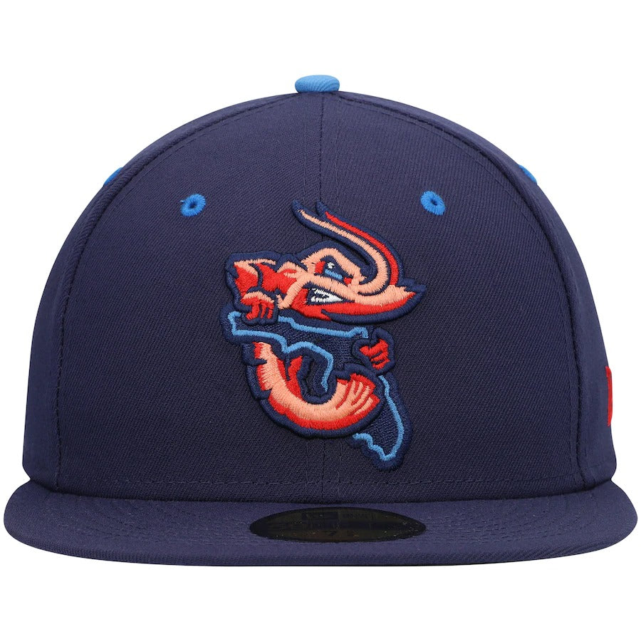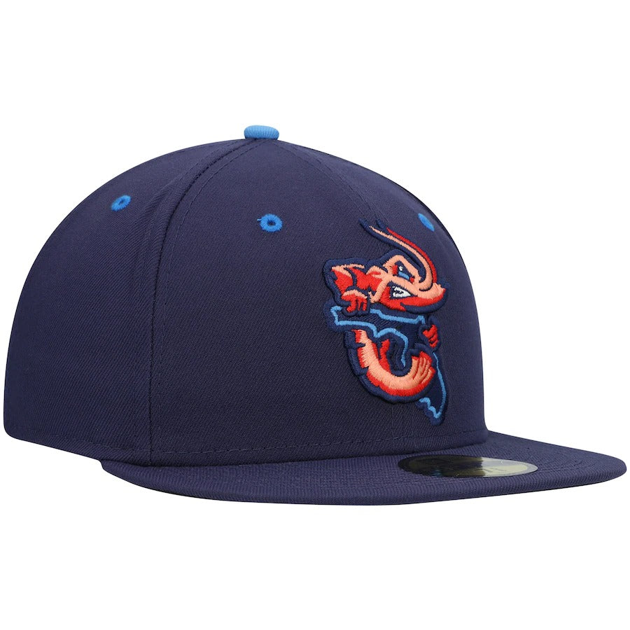 Wearing this New Era 59FIFTY hat on more than just game day allows your Jacksonville Jumbo Shrimp fandom to be seen all the time. A trendy high crown and fitted construction pair for a classic design. Bold Jacksonville Jumbo Shrimp embroidery completes this cap for an accessory that shows you're more than an average fan.