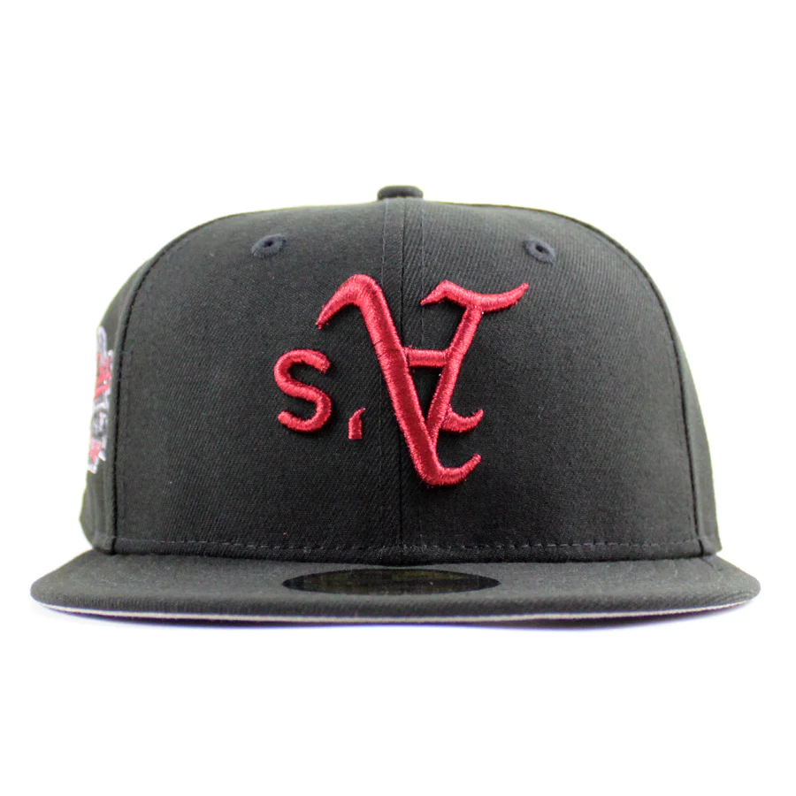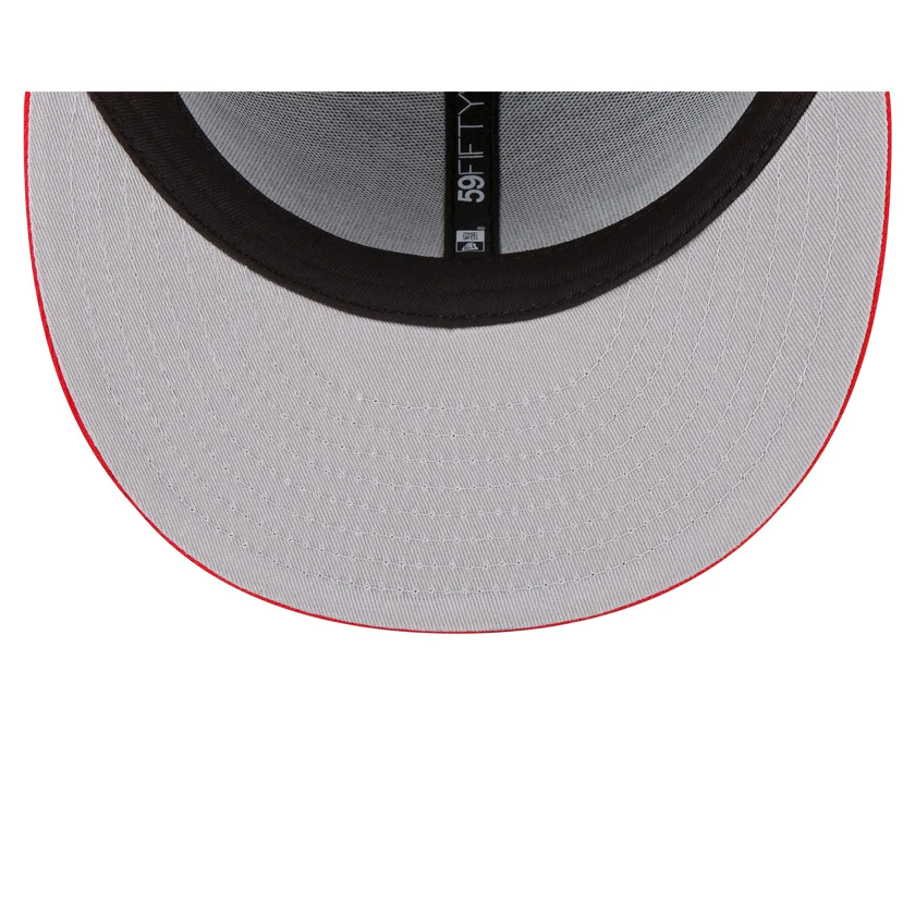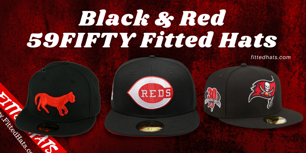 Browse our red and black fitted hats. This collection of fitted hats have a red and black colorway which is often mixed with white and other colors. These are New Era 59Fifty fitted hats for fans of the MLB, NBA, NFL, MiLB and more!