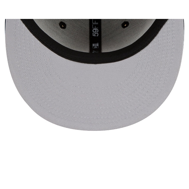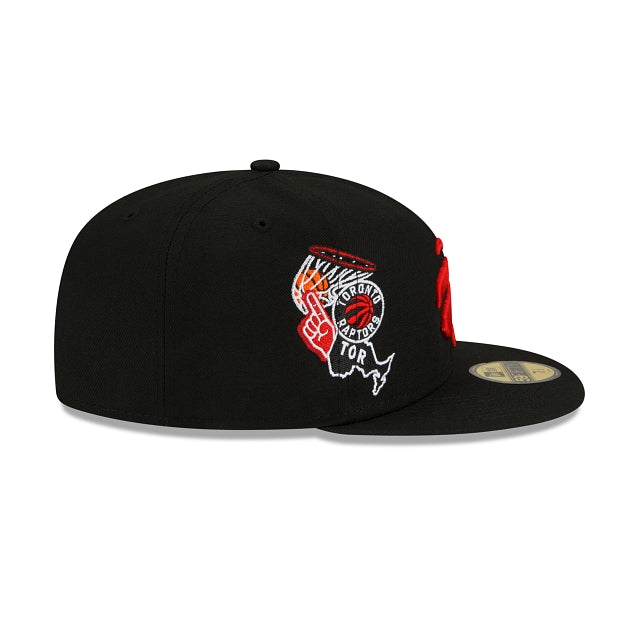 Get the foam finger ready. The Toronto Raptors Fan Out 59FIFTY Fitted Cap features an embroidered Raptors logo at the front panels, a city inspired graphic embroidered at the front right-wear side and the NBA logo embroidered at the rear.
