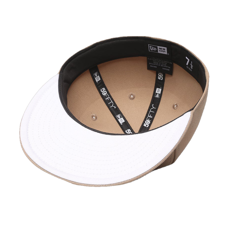 This New Era Tumbleweed Blank 59FIFTY Fitted Hat was released by Culture Kings. The fitted cap features a six panel structured high crown and embroidered eyelets with a fabric squatchee button and flat bill. The fitted has an undervisor and a sweatband as well. The front panel is blank with the New Era logo embroidered on the left panel.