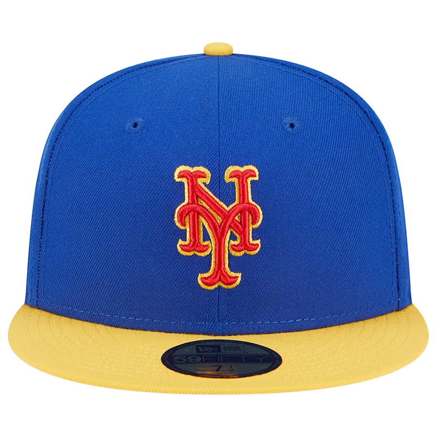 Experience a whole new level of style for your New York Mets headwear with the Empire 59FIFTY hat from New Era. This hat features a vibrant royal blue and yellow colorway that will make you stand out in the crowd. The New York Mets logo is prominently raised on the front, showcasing your team loyalty. The hat boasts vintage graphics skillfully embroidered on the side, adding a touch of classic charm. With its fitted construction, this cap ensures a snug and comfortable fit that's tailored just for you.