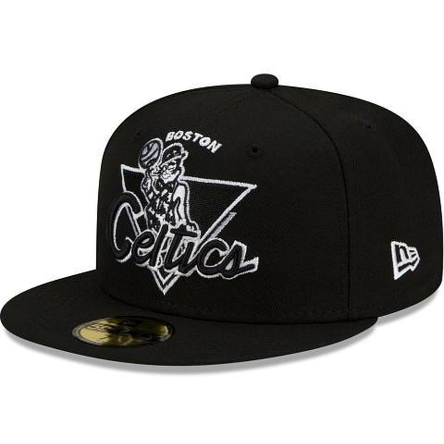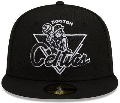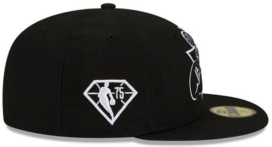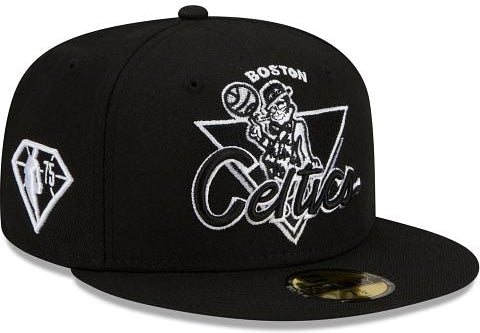 Fresh look for a fresh start. The Boston Celtics Tip Off Black 59FIFTY Fitted Cap features a custom Celtics mark inspired by logos and wordmarks embroidered at the front panels with the Official NBA 75th anniversary logo embroidered at the right-wear side. Additional details include a team logo at the rear with a gray undervisor.