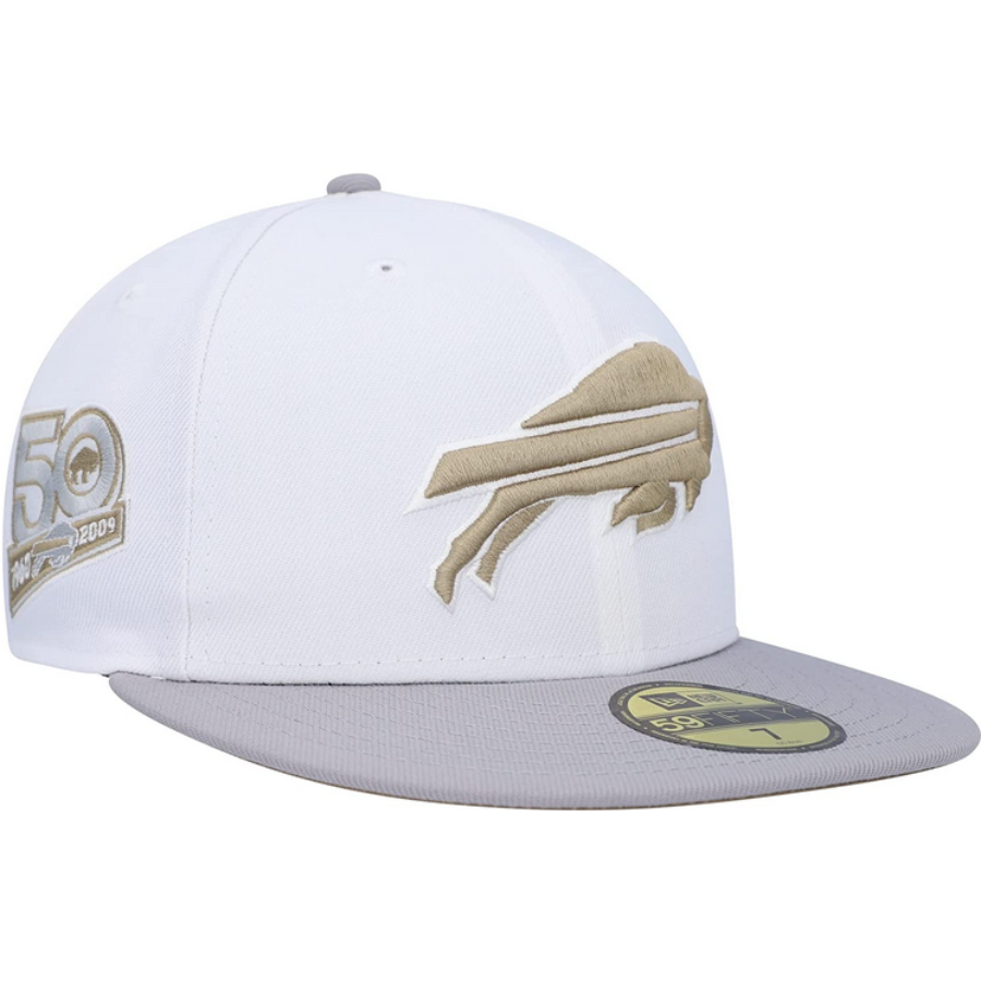 Add a stylish finishing touch to any fan getup with this Buffalo Bills Gold Undervisor 59FIFTY hat by New Era. It features a fitted construction and trendy high crown for a classic game day look. The bold Buffalo Bills embroidery on the front panels is complemented by a commemorative 50th Anniversary side patch, showing that you're more than a casual fan.