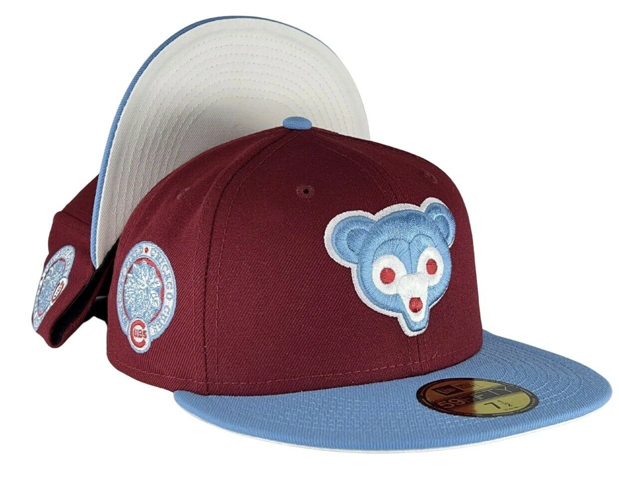 Burgundy & Sky Blue Chicago Cubs Fitted Hat
