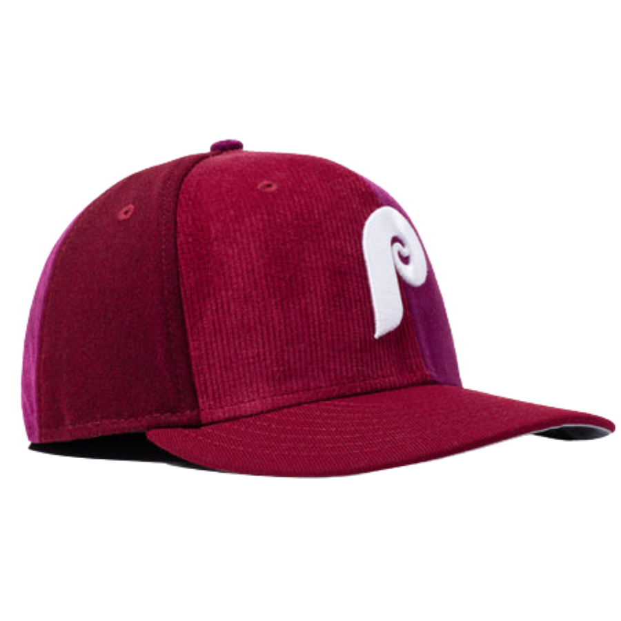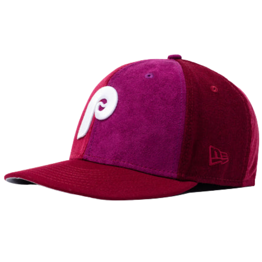 Here's a unique hat for your collection especially if you are a Phillies fan. The New Era x Packer Philadelphia Phillies Patchwork 59FIFTY fitted cap is quite the eye candy. The fitted features patchworks of various fabrics including corduroy and faux suede. The patchwork are also in various shades of burgundy.