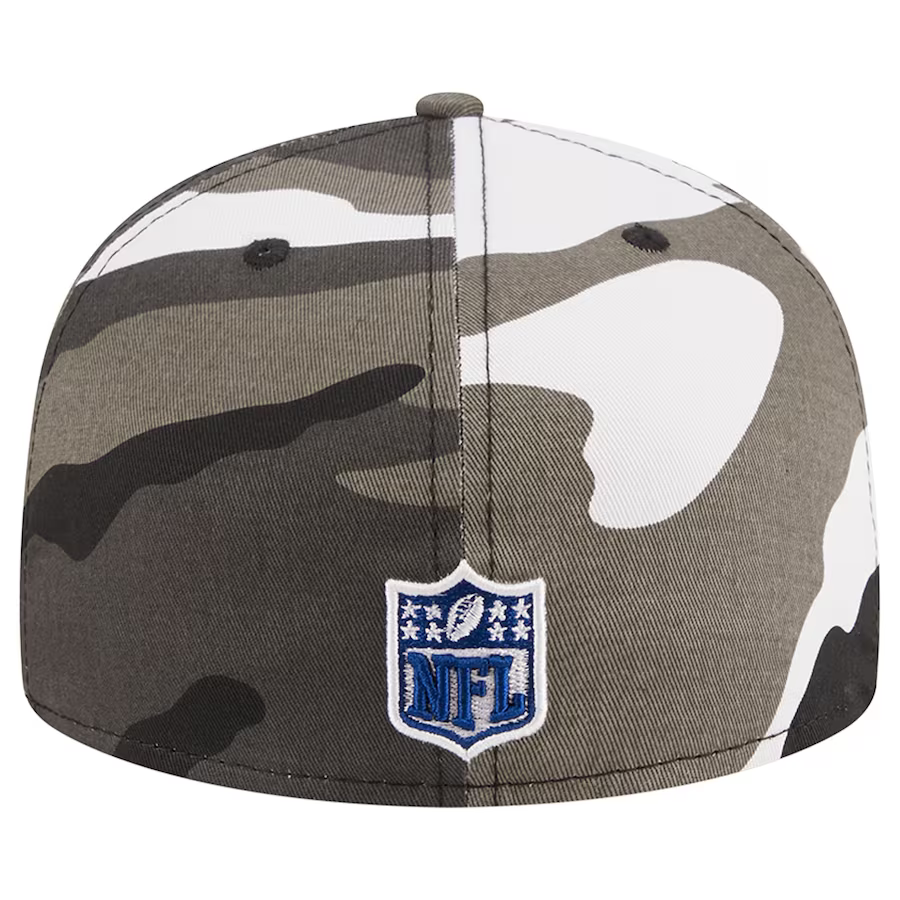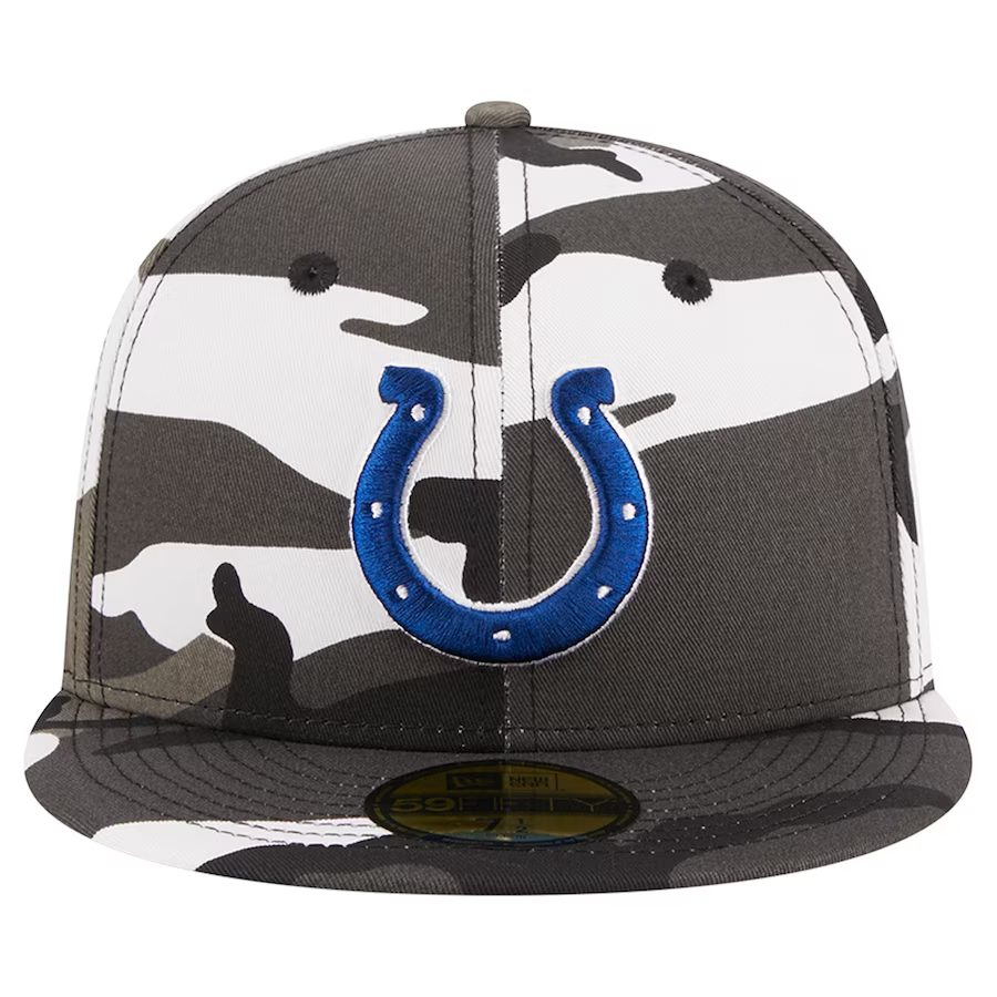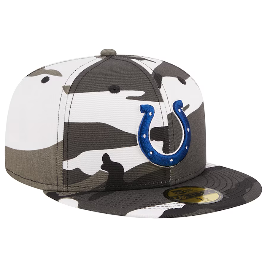 Level up your Indianapolis Colts game with the edgy and stylish Urban Camo 59FIFTY hat by New Era. This hat brings a street-ready flair to your fandom, making it a must-have accessory for any die-hard fan. Constructed with a structured design, flat bill, and high crown, this hat exudes a trendy and elevated look that sets you apart from the crowd. The vibrant Indianapolis Colts graphics take center stage, beautifully showcased against a cool camo background.