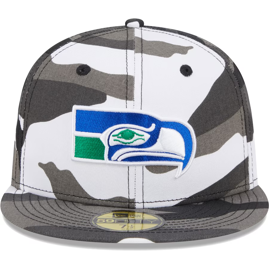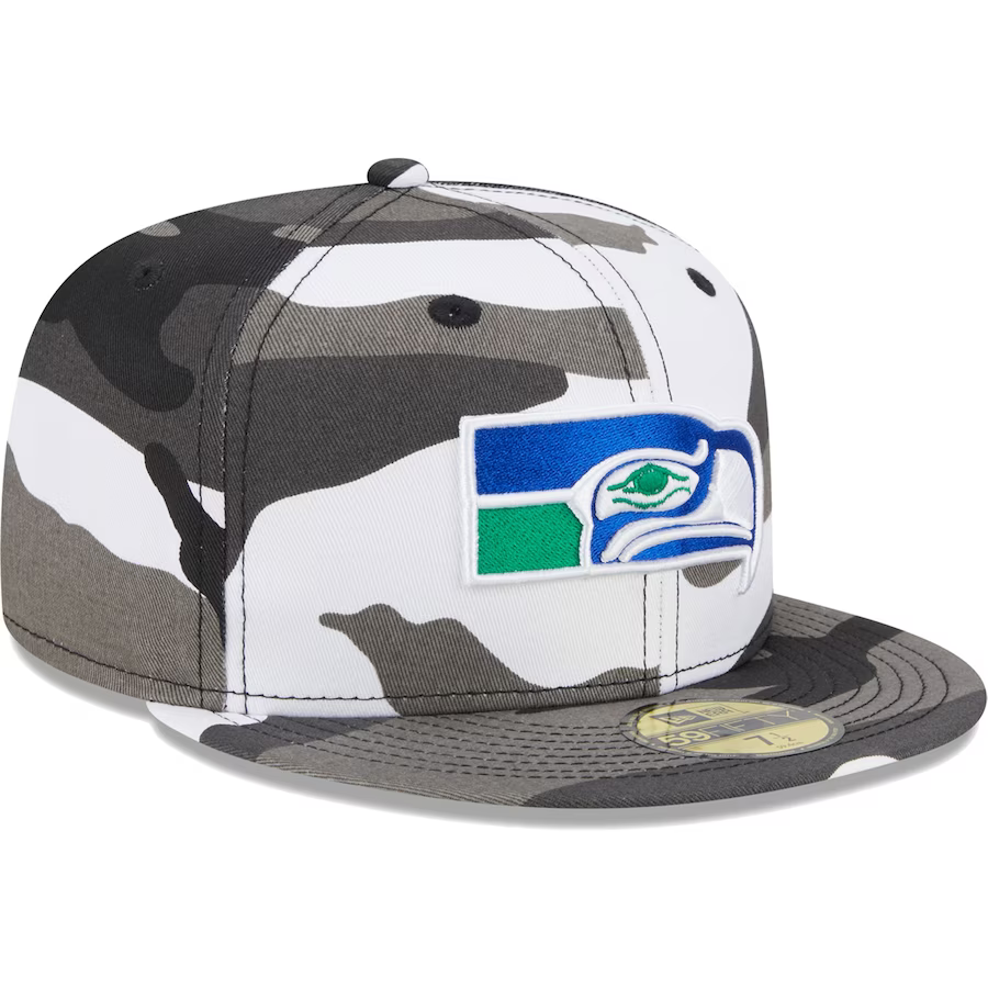 Level up your Seattle Seahawks game with the edgy and stylish Urban Camo 59FIFTY hat by New Era. This hat brings a street-ready flair to your fandom, making it a must-have accessory for any die-hard fan. Constructed with a structured design, flat bill, and high crown, this hat exudes a trendy and elevated look that sets you apart from the crowd. The vibrant Seattle Seahawks graphics take center stage, beautifully showcased against a cool camo background.