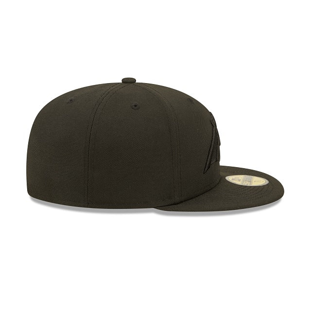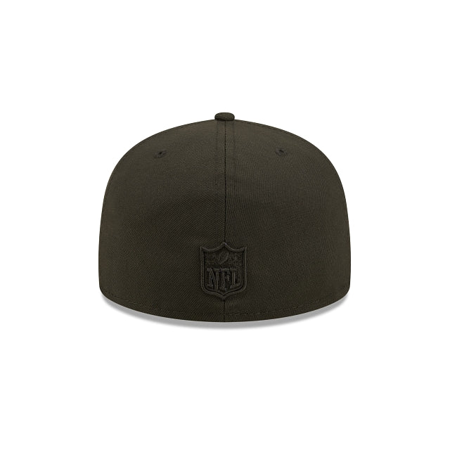 The Carolina Panthers Logo Feature 59FIFTY Fitted Cap has an embroidered blackout Panthers logo overlayed with a team colored feature logo at the front panels, and a blackout NFL Shield at the rear. Additional details include a blue undervisor.
